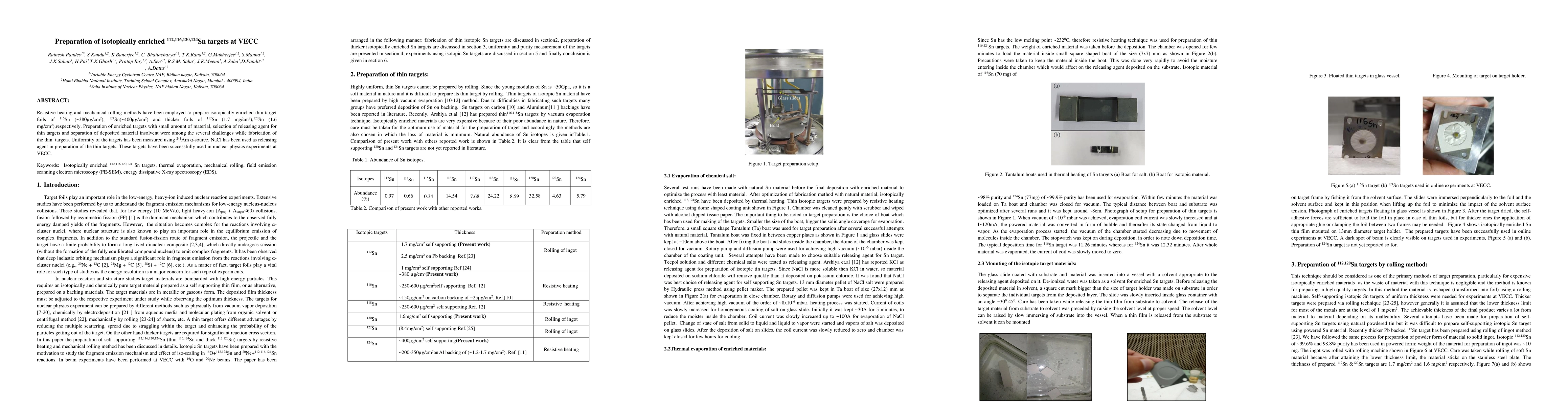 The paper presents a detailed procedure for preparing isotopically enriched Sn targets using resistive heating and mechanical rolling methods, along with characterization techniques for uniformity, purity, and surface morphology.