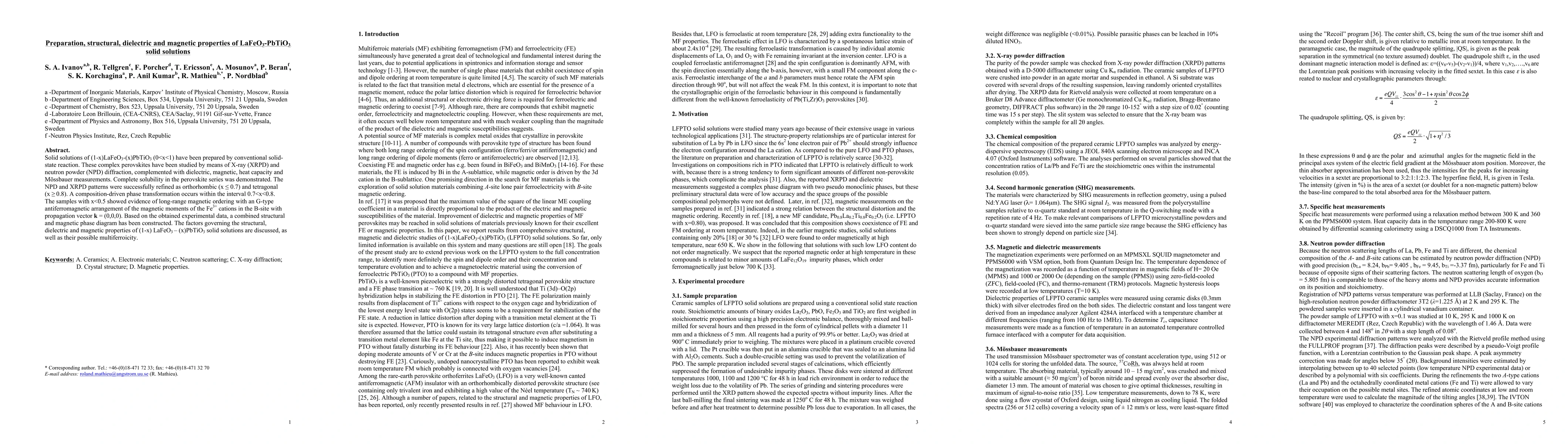 Solid solutions of (1-x)LaFeO3-(x)PbTiO3 (0