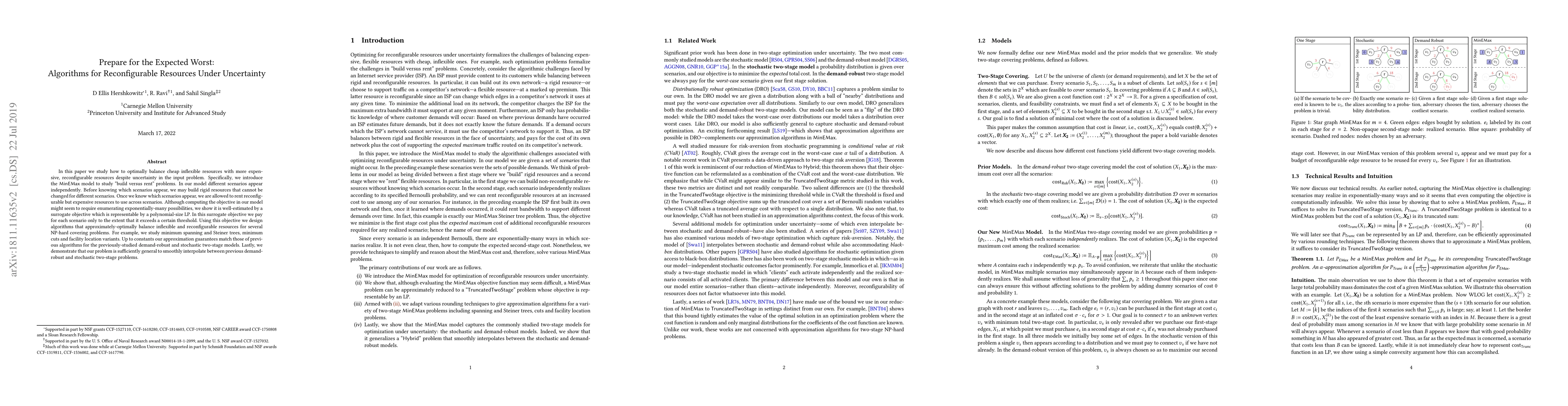 In this paper we study how to optimally balance cheap inflexible resources with more expensive, reconfigurable resources despite uncertainty in the input problem. Specifically, we introduce the MinEMax model to study "build versus rent" problems. In our model different scenarios appear independently. Before knowing which scenarios appear, we may build rigid resources that cannot be changed for different scenarios. Once we know which scenarios appear, we are allowed to rent reconfigurable but expensive resources to use across scenarios. Although computing the objective in our model might seem to require enumerating exponentially-many possibilities, we show it is well-estimated by a surrogate objective which is representable by a polynomial-size LP. In this surrogate objective we pay for each scenario only to the extent that it exceeds a certain threshold. Using this objective we design algorithms that approximately-optimally balance inflexible and reconfigurable resources for several NP-hard covering problems. For example, we study minimum spanning and Steiner trees, minimum cuts and facility location variants. Up to constants our approximation guarantees match those of previous algorithms for the previously-studied demand-robust and stochastic two-stage models. Lastly, we demonstrate that our problem is sufficiently general to smoothly interpolate between previous demand-robust and stochastic two-stage problems.