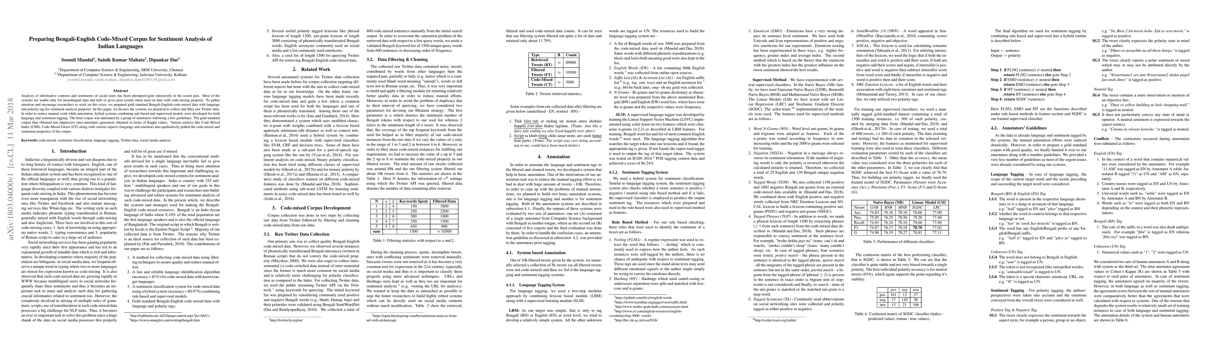 This paper presents a gold standard Bengali-English code-mixed corpus for sentiment analysis, developed using hybrid systems combining rule-based and supervised models to reduce annotation effort. The corpus exhibits high inter-annotator agreement and includes various metrics to evaluate code-mixing and sentiment properties.