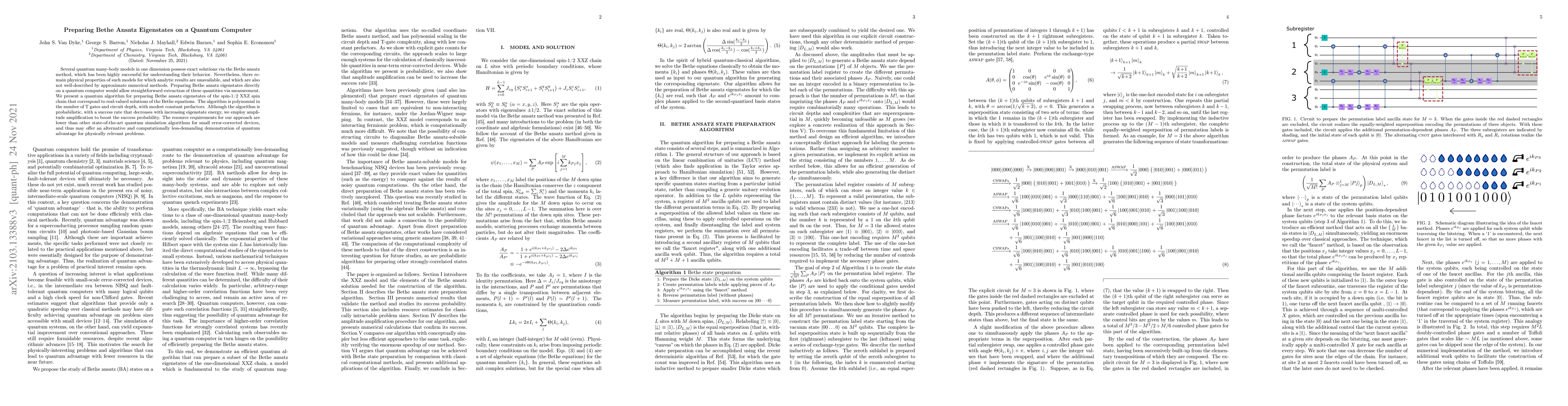 This paper proposes a quantum algorithm for preparing Bethe ansatz eigenstates of the spin-1/2 XXZ spin chain, enabling the extraction of physical properties not easily described by classical methods. The algorithm is efficient and probabilistic, employing amplitude amplification to enhance success probability, and requires fewer resources than other quantum simulation methods.