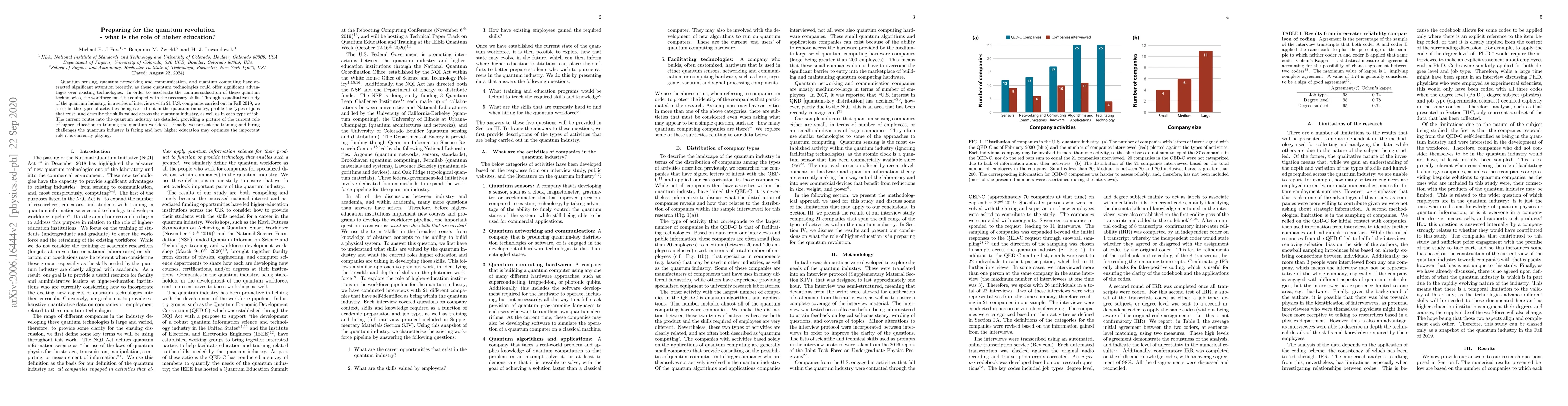 Quantum sensing, quantum networking and communication, and quantum computing have attracted significant attention recently, as these quantum technologies offer significant advantages over existing technologies. In order to accelerate the commercialization of these quantum technologies the workforce must be equipped with the necessary skills. Through a qualitative study of the quantum industry, in a series of interviews with 21 U.S. companies carried out in Fall 2019, we describe the types of activities being carried out in the quantum industry, profile the types of jobs that exist, and describe the skills valued across the quantum industry, as well as in each type of job. The current routes into the quantum industry are detailed, providing a picture of the current role of higher education in training the quantum workforce. Finally, we present the training and hiring challenges the quantum industry is facing and how higher education may optimize the important role it is currently playing.