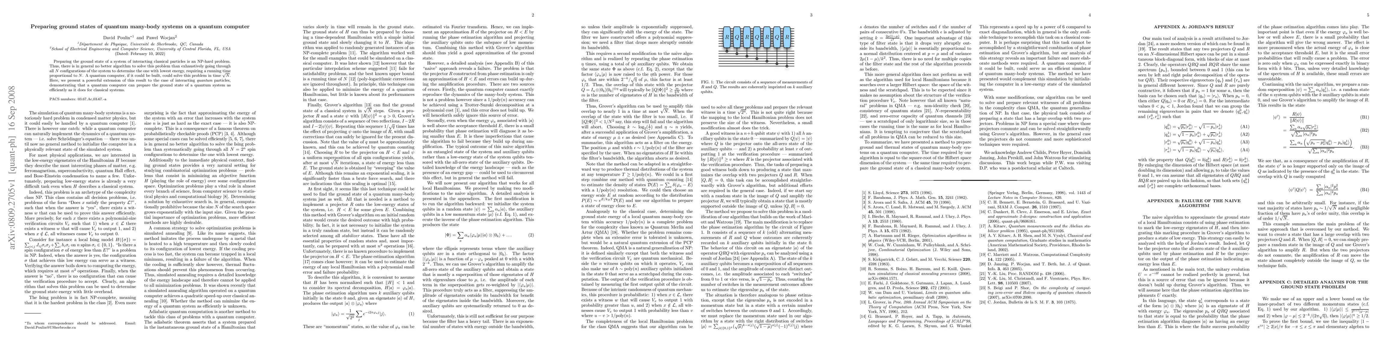 This paper demonstrates that a quantum computer can prepare the ground state of quantum many-body systems more efficiently than classical methods, achieving a solution time proportional to the square root of the number of configurations, thus extending the quantum advantage to quantum systems.