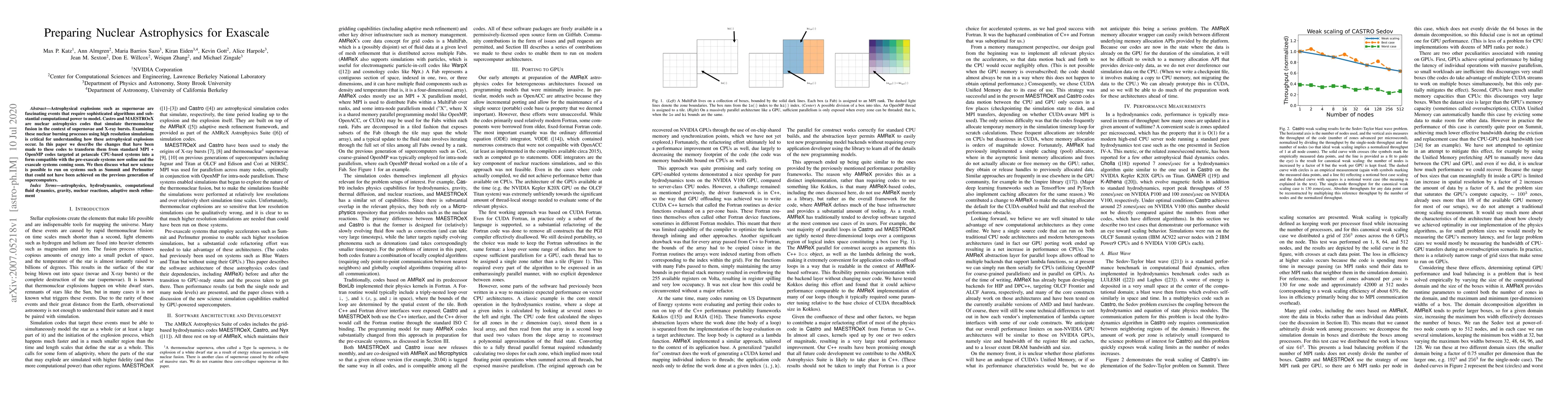 This paper details the adaptation of nuclear astrophysics codes Castro and MAESTROeX to meet the computational demands of exascale systems, enabling high-resolution simulations of thermonuclear fusion in astrophysical explosions. The transformation allows for unprecedented scientific exploration on next-generation supercomputers.