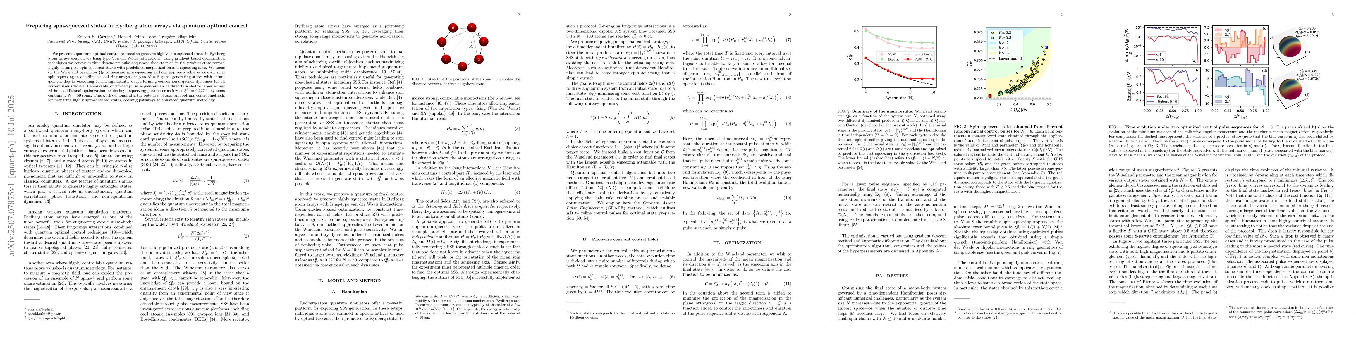 We present a quantum optimal control protocol to generate highly spin-squeezed states in Rydberg atom arrays coupled via Ising-type Van der Waals interactions. Using gradient-based optimization techniques we construct time-dependent pulse sequences that steer an initial product state toward highly entangled, spin-squeezed states with predefined magnetization and squeezing axes. We focus on the Wineland parameter $\xi_W^2$ to measure spin squeezing and our approach achieves near-optimal spin squeezing in one-dimensional ring arrays of up to $N=8$ spins, generating states with entanglement depths exceeding 6, and significantly outperforming conventional quench dynamics for all system sizes studied. Remarkably, optimized pulse sequences can be directly scaled to larger arrays without additional optimization, achieving a squeezing parameter as low as $\xi_W^2 = 0.227$ in systems containing $N=50$ spins. This work demonstrates the potential of quantum optimal control methods for preparing highly spin-squeezed states, opening pathways to enhanced quantum metrology.