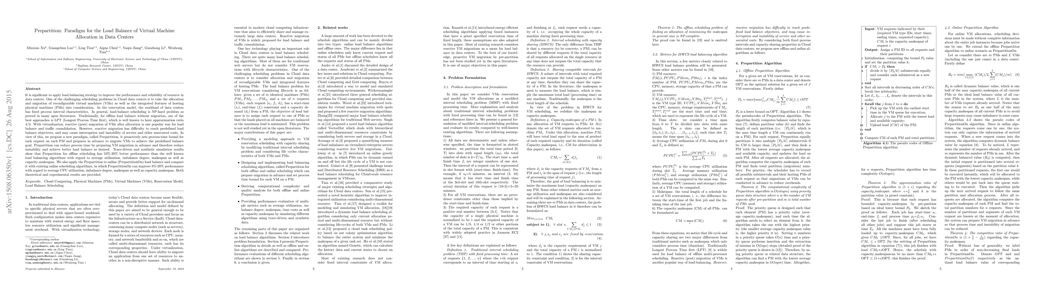 The paper proposes a new paradigm called Prepartition for proactive load balancing in data centers, which sets process-time bounds for VM allocation and anticipates VM migrations to achieve predefined balance goals, reducing instability and improving performance compared to reactive migration methods. Experimental and theoretical results demonstrate its effectiveness over existing online scheduling algorithms.