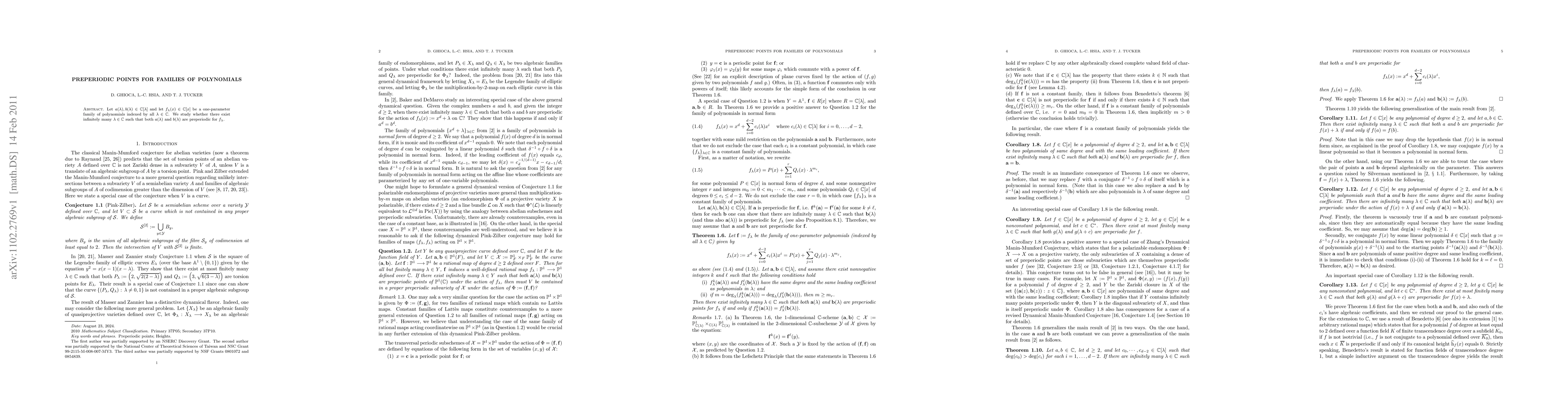 This paper investigates the existence of infinitely many complex values of $\lambda$ for which both $a(\lambda)$ and $b(\lambda)$ are preperiodic under the family of polynomials $f_{\lambda}$. The focus is on the interplay between the polynomials and their preperiodic behavior.