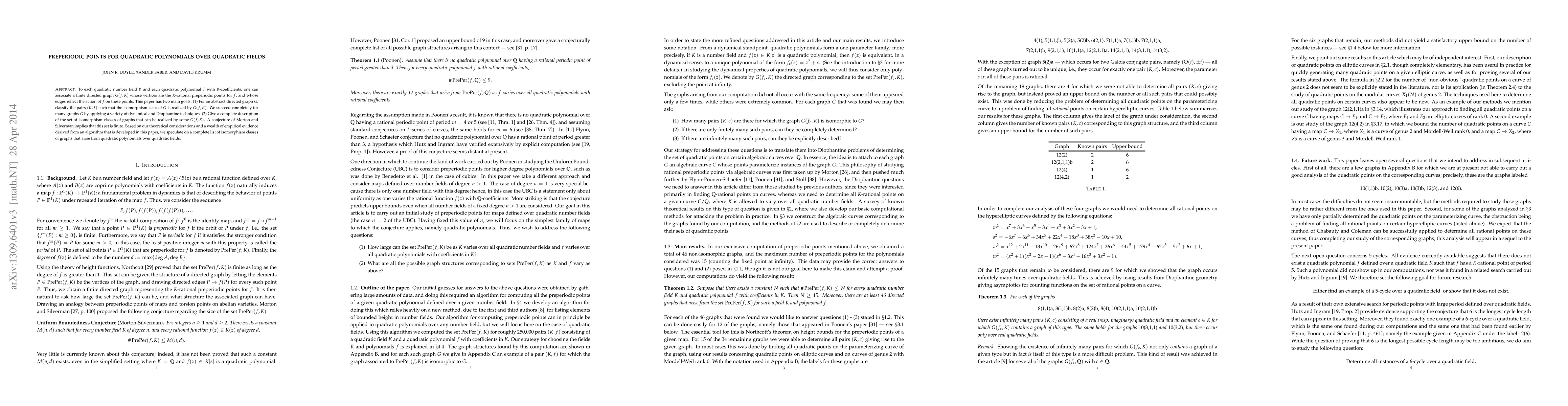 To each quadratic number field $K$ and each quadratic polynomial $f$ with $K$-coefficients, one can associate a finite directed graph $G(f,K)$ whose vertices are the $K$-rational preperiodic points for $f$, and whose edges reflect the action of $f$ on these points. This paper has two main goals. (1) For an abstract directed graph $G$, classify the pairs $(K,f)$ such that the isomorphism class of $G$ is realized by $G(f,K)$. We succeed completely for many graphs $G$ by applying a variety of dynamical and Diophantine techniques. (2) Give a complete description of the set of isomorphism classes of graphs that can be realized by some $G(f,K)$. A conjecture of Morton and Silverman implies that this set is finite. Based on our theoretical considerations and a wealth of empirical evidence derived from an algorithm that is developed in this paper, we speculate on a complete list of isomorphism classes of graphs that arise from quadratic polynomials over quadratic fields.
