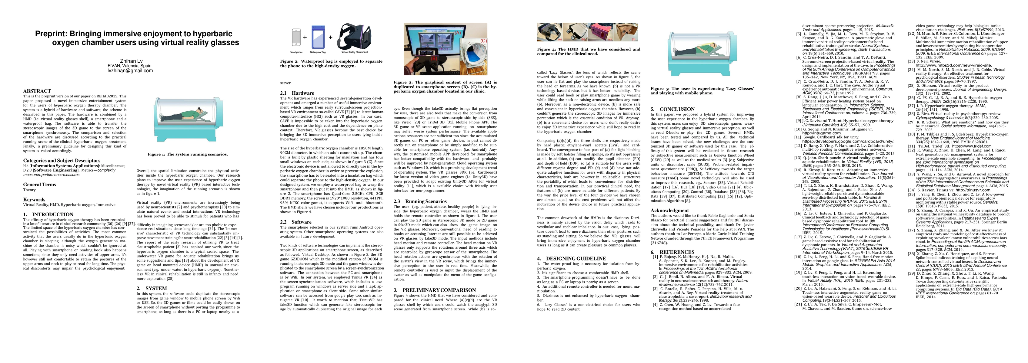 Researchers created a virtual reality system to enhance user experience in hyperbaric oxygen therapy chambers, combining hardware and software for an immersive entertainment experience. The study proposed guidelines for designing such systems and suggested potential benefits for patients.