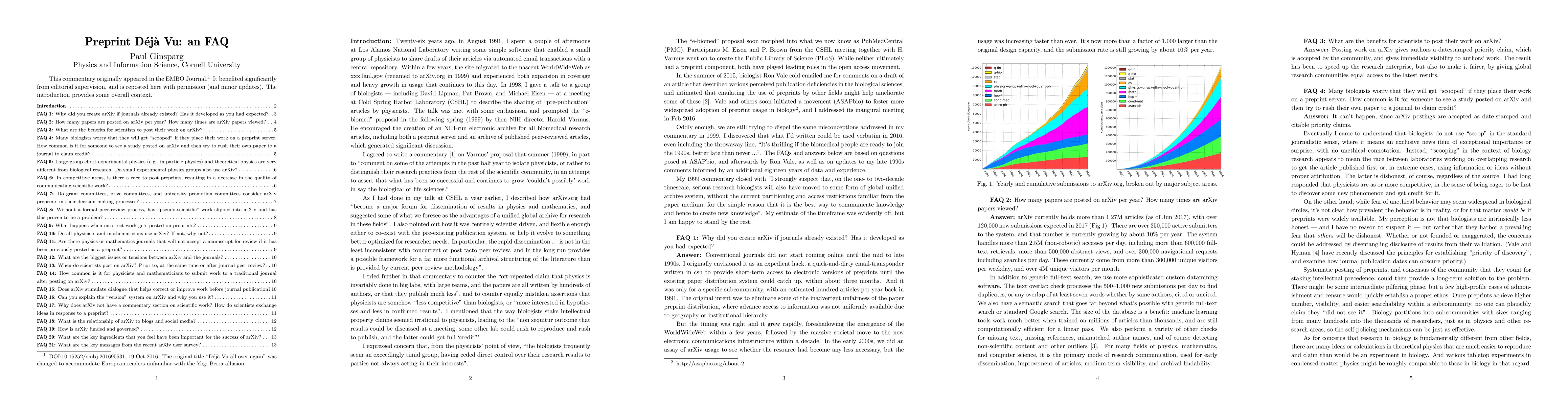 This paper updates on arXiv history, describing its current state of technical and sociological practices among biologists. It provides insights into the use of preprints in various disciplines, offering a commentary based on a keynote presentation and follow-up questions.