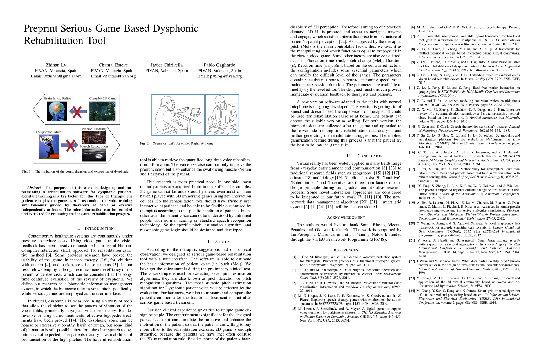 This paper presents a serious game-based rehabilitation tool designed for dysphonic patients, allowing for both guided clinic sessions and independent home exercises, with voice data recorded for progress evaluation.