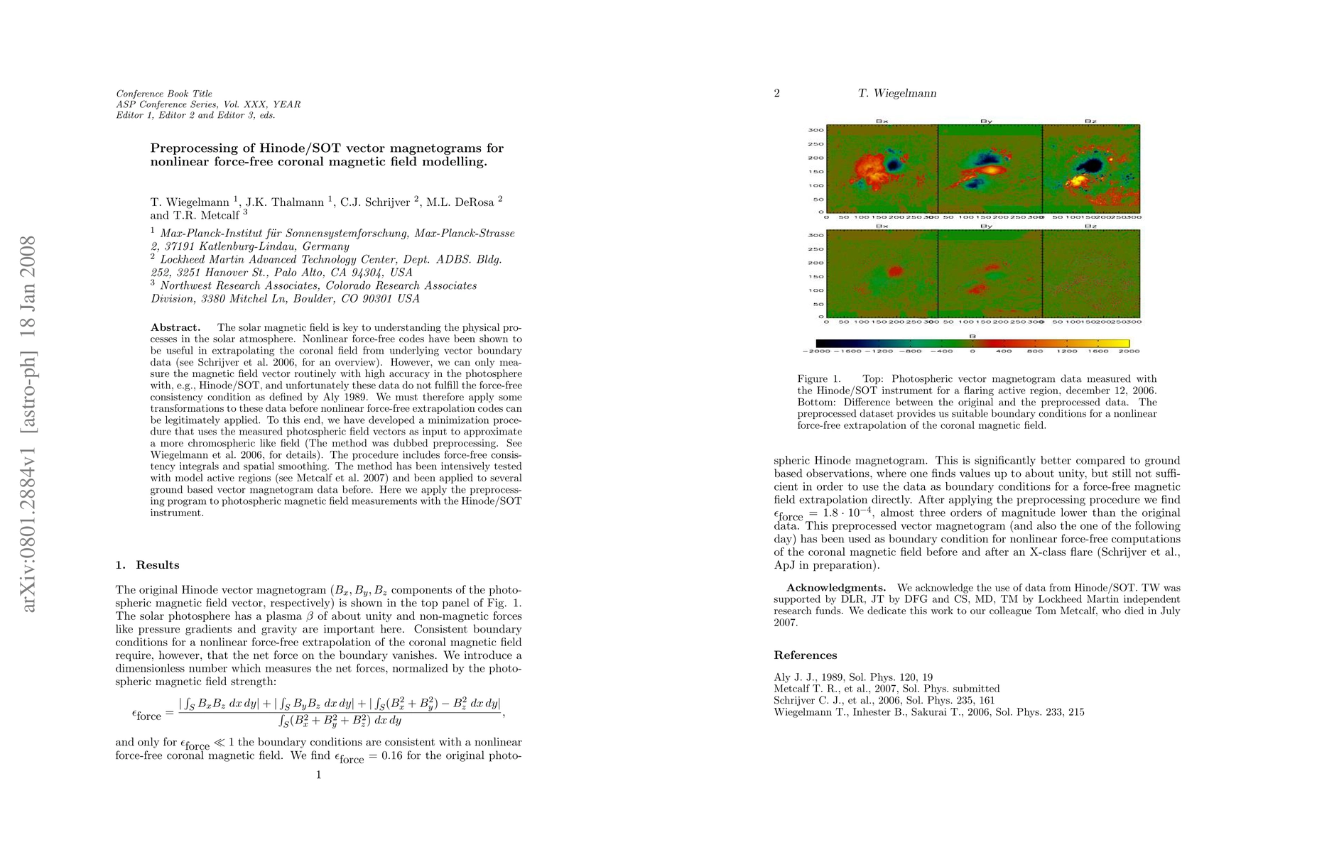 The solar magnetic field is key to understanding the physical processes in the solar atmosphere. Nonlinear force-free codes have been shown to be useful in extrapolating the coronal field from underlying vector boundary data [see Schrijver et al. 2006 for an overview]. However, we can only measure the magnetic field vector routinely with high accuracy in the photosphere with, e.g., Hinode/SOT, and unfortunately these data do not fulfill the force-free consistency condition as defined by Aly (1989). We must therefore apply some transformations to these data before nonlinear force-free extrapolation codes can be legitimately applied. To this end, we have developed a minimization procedure that uses the measured photospheric field vectors as input to approximate a more chromospheric like field The method was dubbed preprocessing. See Wiegelmann et al. 2006 for details]. The procedure includes force-free consistency integrals and spatial smoothing. The method has been intensively tested with model active regions [see Metcalf et al. 2008] and been applied to several ground based vector magnetogram data before. Here we apply the preprocessing program to photospheric magnetic field measurements with the Hinode/SOT instrument.