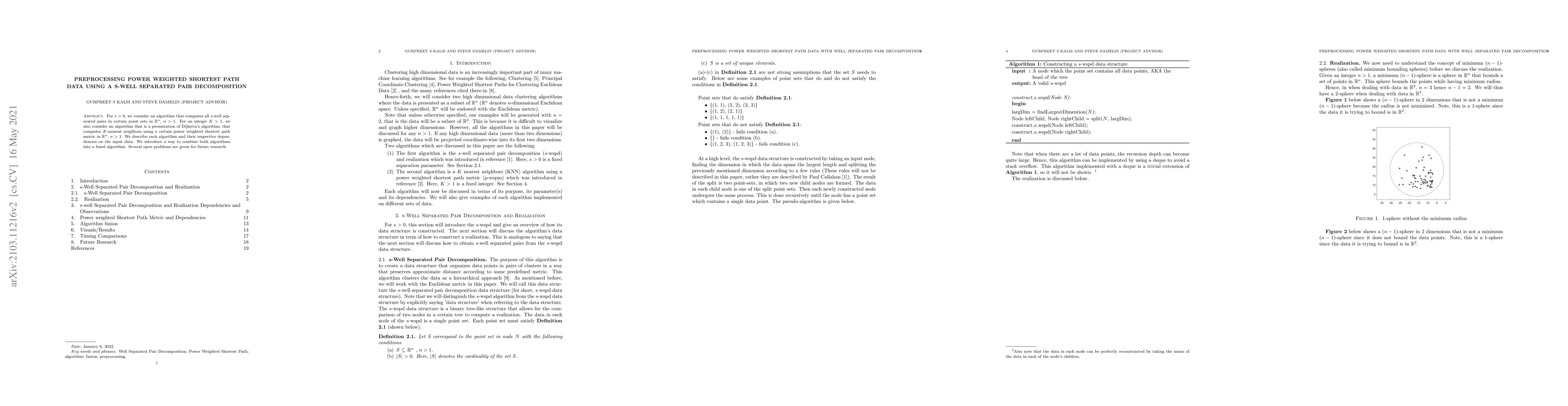 For $s$ $>$ 0, we consider an algorithm that computes all $s$-well separated pairs in certain point sets in $\mathbb{R}^{n}$, $n$ $>1$. For an integer $K$ $>1$, we also consider an algorithm that is a permutation of Dijkstra's algorithm, that computes $K$-nearest neighbors using a certain power weighted shortest path metric in $\mathbb{R}^{n}$, $n$ $>$ $1$. We describe each algorithm and their respective dependencies on the input data. We introduce a way to combine both algorithms into a fused algorithm. Several open problems are given for future research.