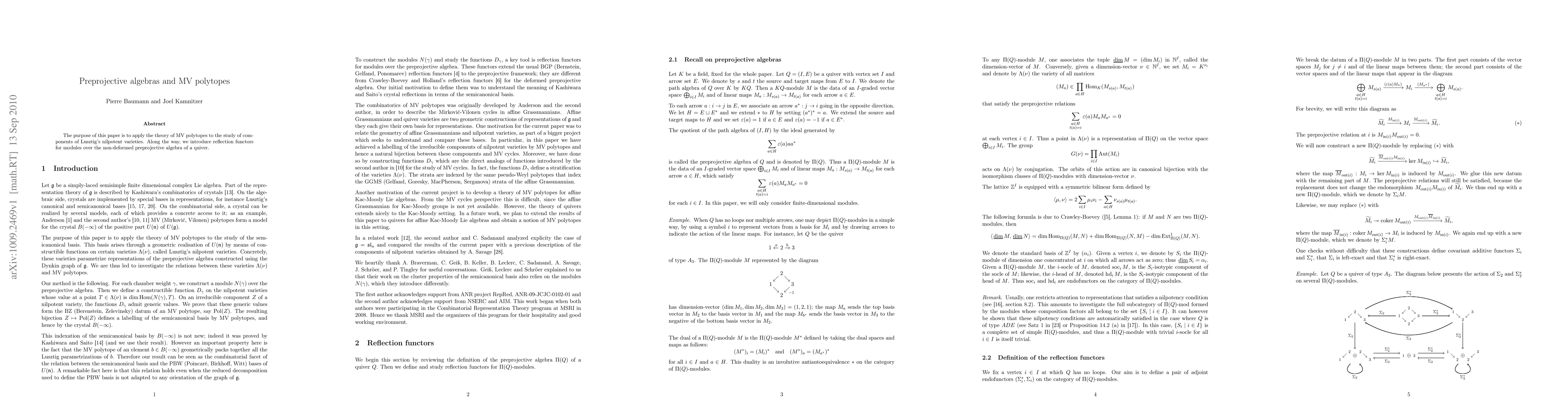 The purpose of this paper is to apply the theory of MV polytopes to the study of components of Lusztig's nilpotent varieties. Along the way, we introduce reflection functors for modules over the non-deformed preprojective algebra of a quiver.