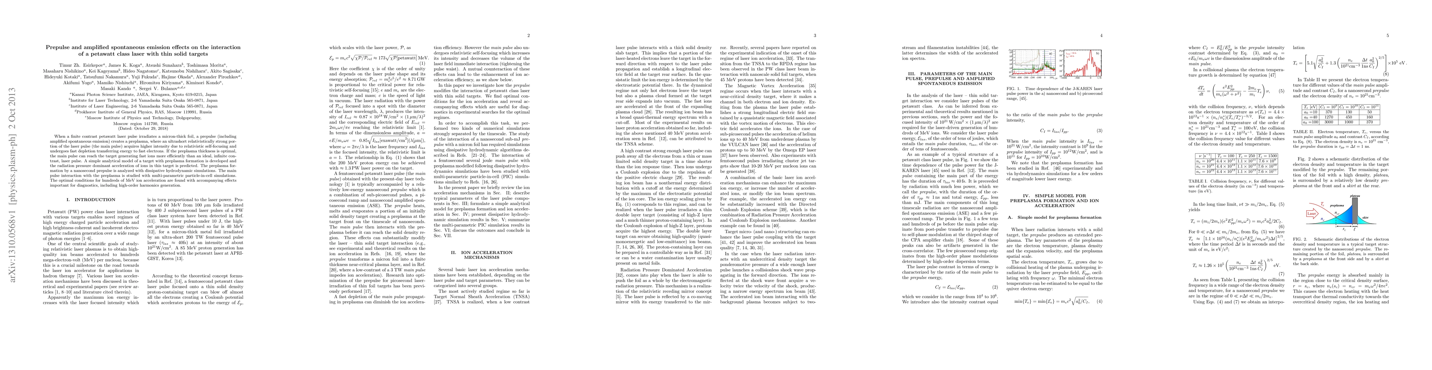 This paper investigates how a prepulse and amplified spontaneous emission affect the interaction of a petawatt laser with thin solid targets, finding that an optimal preplasma can enhance ion acceleration efficiency. Analytical and simulation models predict the conditions for achieving hundreds of MeV ion acceleration, alongside diagnostics like high-order harmonics generation.