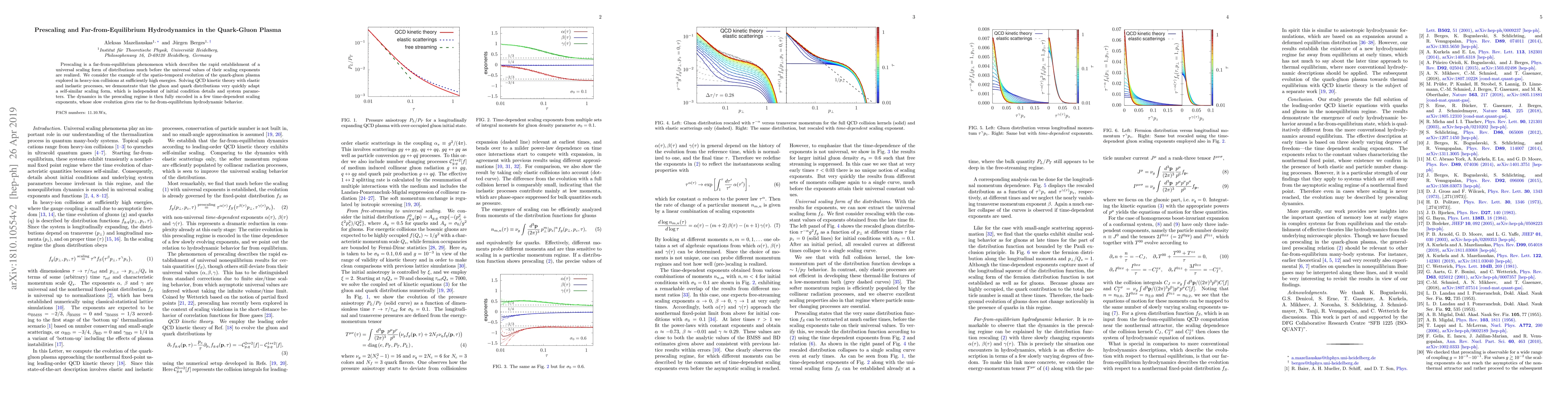This paper investigates the prescaling phenomenon in the quark-gluon plasma, demonstrating that gluon and quark distributions rapidly adopt a self-similar scaling form independent of initial conditions. The study reveals that the dynamics in the prescaling regime are governed by a few time-dependent scaling exponents, leading to far-from-equilibrium hydrodynamic behavior.