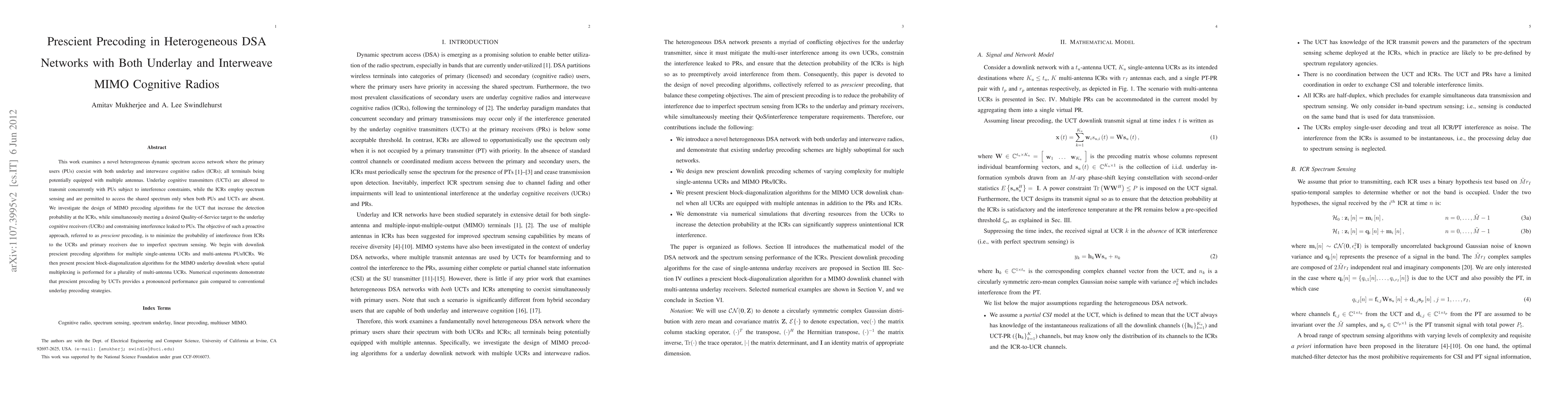 This work examines a novel heterogeneous dynamic spectrum access network where the primary users (PUs) coexist with both underlay and interweave cognitive radios (ICRs); all terminals being potentially equipped with multiple antennas. Underlay cognitive transmitters (UCTs) are allowed to transmit concurrently with PUs subject to interference constraints, while the ICRs employ spectrum sensing and are permitted to access the shared spectrum only when both PUs and UCTs are absent. We investigate the design of MIMO precoding algorithms for the UCT that increase the detection probability at the ICRs, while simultaneously meeting a desired Quality-of-Service target to the underlay cognitive receivers (UCRs) and constraining interference leaked to PUs. The objective of such a proactive approach, referred to as prescient precoding, is to minimize the probability of interference from ICRs to the UCRs and primary receivers due to imperfect spectrum sensing. We begin with downlink prescient precoding algorithms for multiple single-antenna UCRs and multi-antenna PUs/ICRs. We then present prescient block-diagonalization algorithms for the MIMO underlay downlink where spatial multiplexing is performed for a plurality of multi-antenna UCRs. Numerical experiments demonstrate that prescient precoding by UCTs provides a pronounced performance gain compared to conventional underlay precoding strategies.