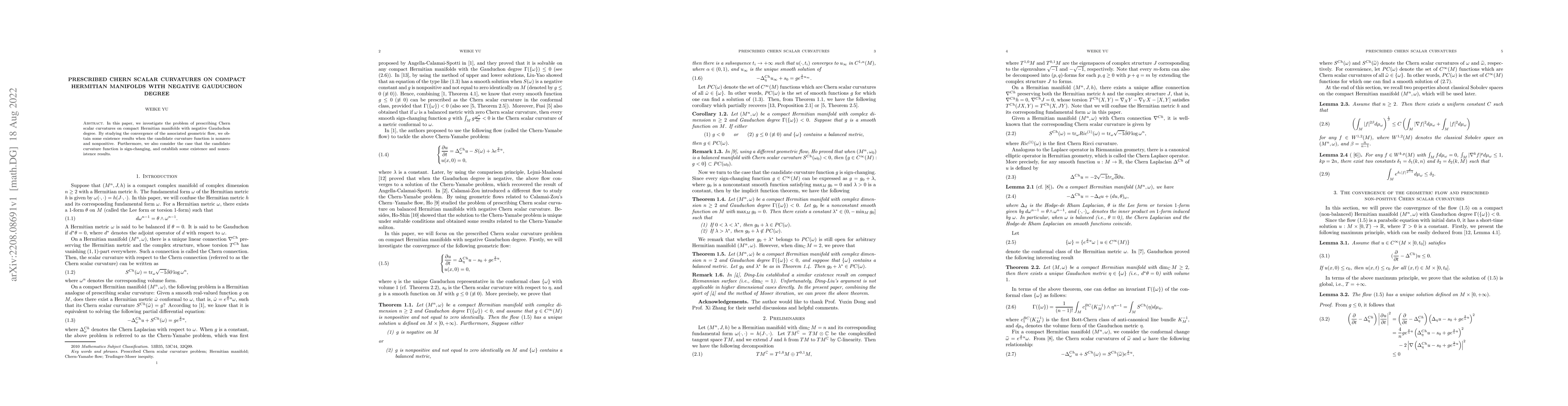 This paper explores prescribing Chern scalar curvatures on compact Hermitian manifolds with negative Gauduchon degree, proving existence results for nonpositive and sign-changing curvature functions through the convergence of associated geometric flow.