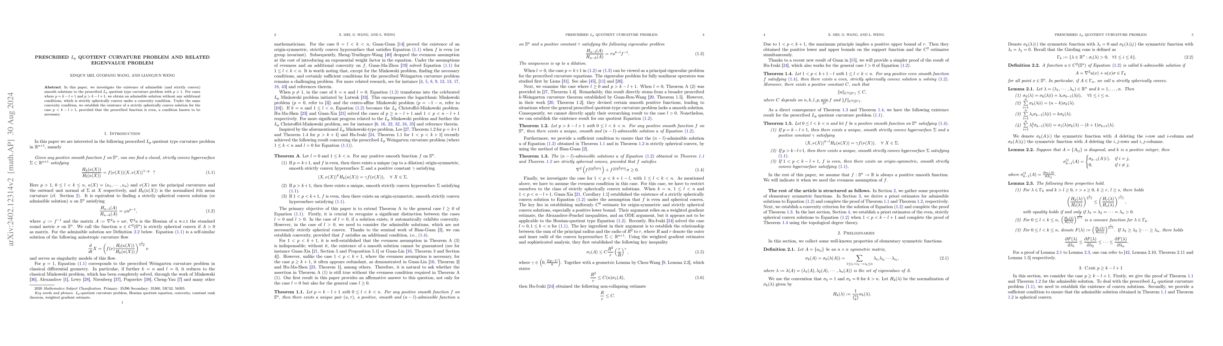 convex) smooth solutions to the prescribed $L_p$ quotient type curvature