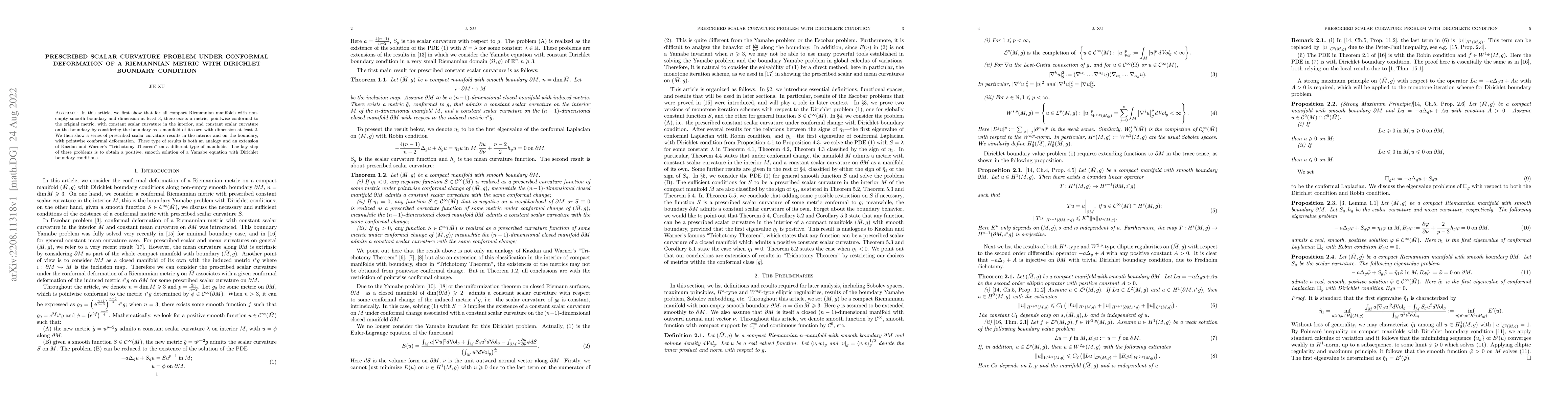 This paper proves the existence of conformal metrics with constant scalar curvature in both the interior and boundary of compact Riemannian manifolds, extending results analogous to Kazdan and Warner's "Trichotomy Theorem" by solving a Yamabe equation with Dirichlet boundary conditions.