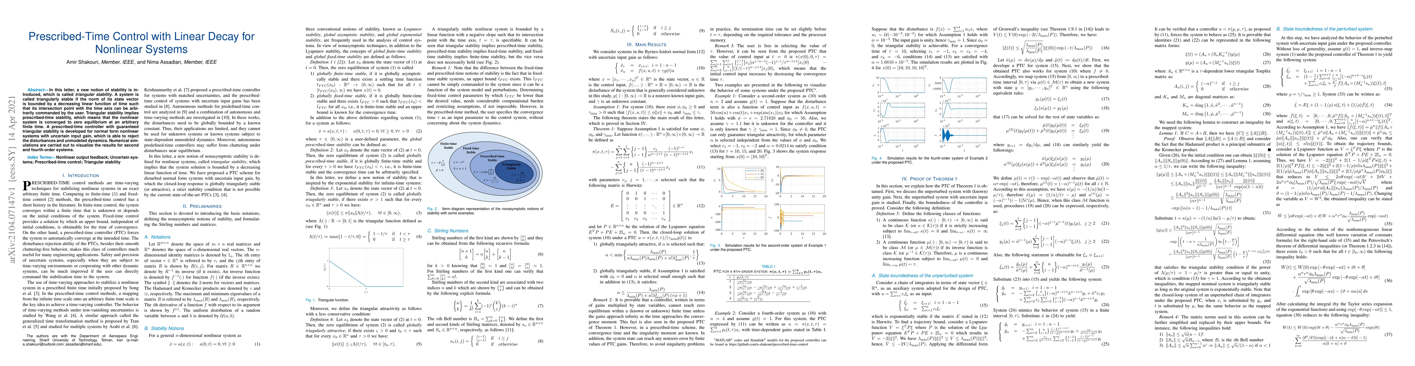 This paper introduces triangular stability, a new stability notion for nonlinear systems, where state norms decay linearly over time with a user-defined intersection point. A prescribed-time controller is developed to achieve triangular stability, ensuring convergence to zero equilibrium in a finite, adjustable time, and effectively handling disturbances and uncertainties.