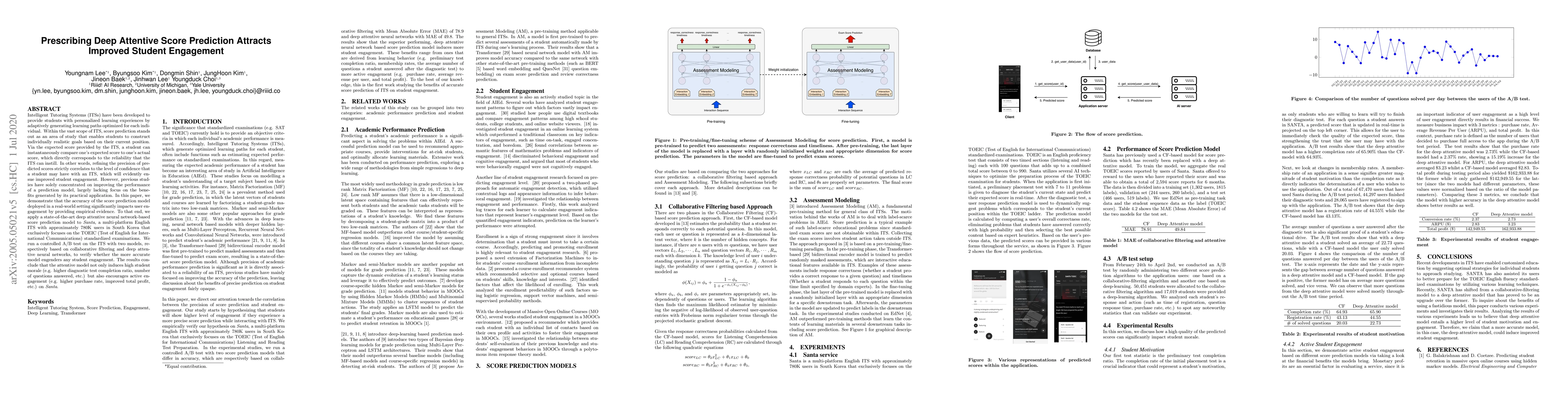 This paper investigates how a deep attentive neural network-based score prediction model in an Intelligent Tutoring System (ITS) enhances student engagement compared to a collaborative filtering model. Empirical results from a controlled A/B test on Santa, an English ITS for TOEIC preparation, show that the more accurate predictive model significantly boosts student morale and active engagement.