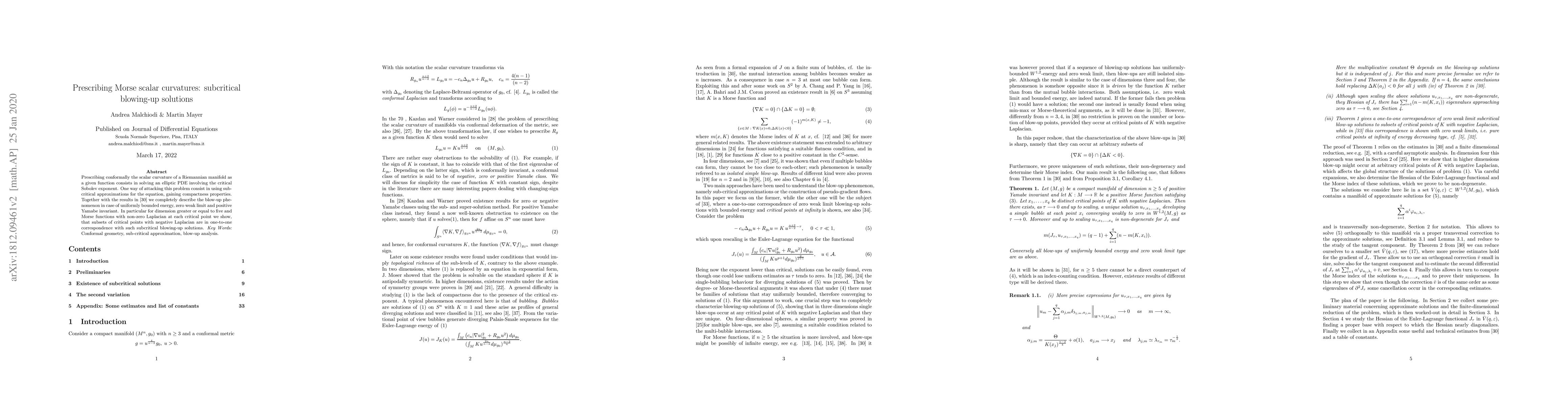 This paper addresses the problem of prescribing scalar curvature on Riemannian manifolds via elliptic PDEs, focusing on subcritical approximations. It reveals the blow-up phenomenon for uniformly bounded energy and zero weak limit in the positive Yamabe class, particularly showing a one-to-one correspondence between subsets of critical points with negative Laplacian and subcritical blowing-up solutions in dimensions five and above.