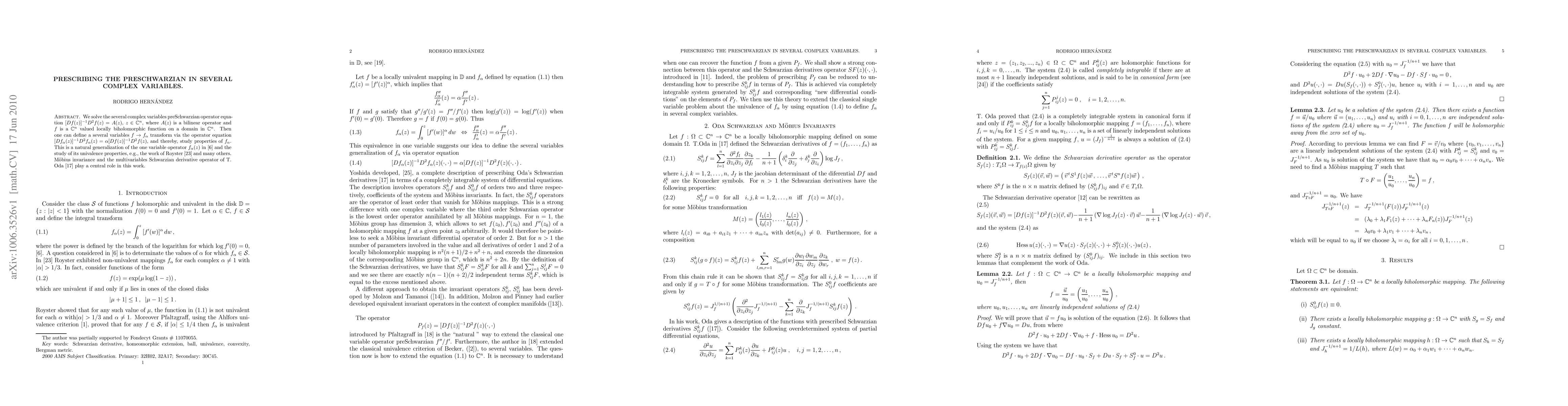 Researchers solve an operator equation for several complex variables, enabling the study of properties like univalence in multivariable functions. This generalization builds on earlier work and incorporates concepts from M"{o}bius invariance and the multivariable Schwarzian derivative.