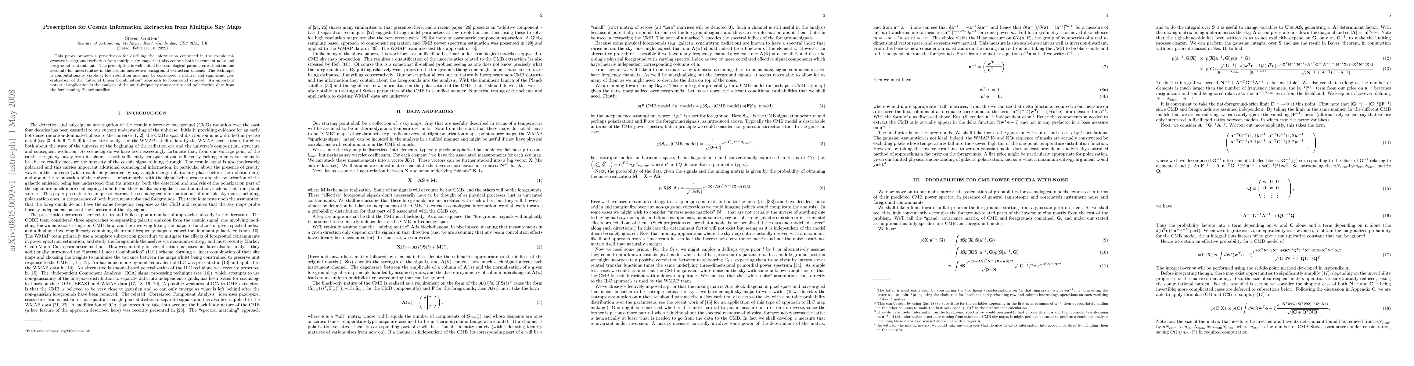 This paper presents a prescription for distilling the information contained in the cosmic microwave background radiation from multiple sky maps that also contain both instrument noise and foreground contaminants. The prescription is well-suited for cosmological parameter estimation and accounts for uncertainties in the cosmic microwave background extraction scheme. The technique is computationally viable at low resolution and may be considered a natural and significant generalization of the "Internal Linear Combination" approach to foreground removal. An important potential application is the analysis of the multi-frequency temperature and polarization data from the forthcoming Planck satellite.