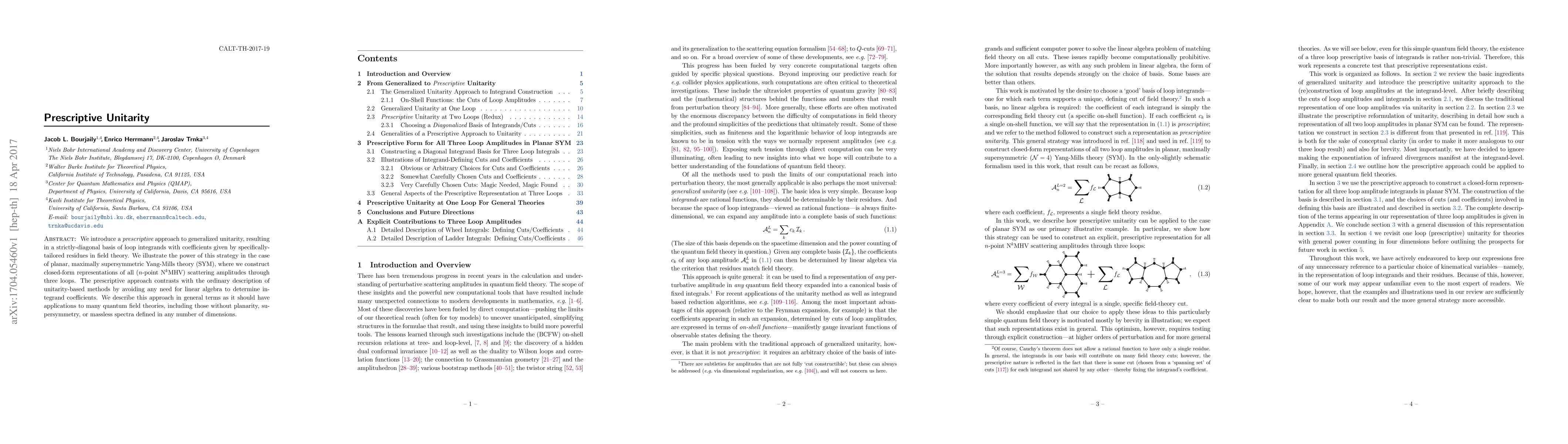 We introduce a prescriptive approach to generalized unitarity, resulting in a strictly-diagonal basis of loop integrands with coefficients given by specifically-tailored residues in field theory. We illustrate the power of this strategy in the case of planar, maximally supersymmetric Yang-Mills theory, where we construct closed-form representations of all ($n$-point N$^k$MHV) scattering amplitudes through three loops. The prescriptive approach contrasts with the ordinary description of unitarity-based methods by avoiding any need for linear algebra to determine integrand coefficients. We describe this approach in general terms as it should have applications to many quantum field theories, including those without planarity, supersymmetry, or massless spectra defined in any number of dimensions.