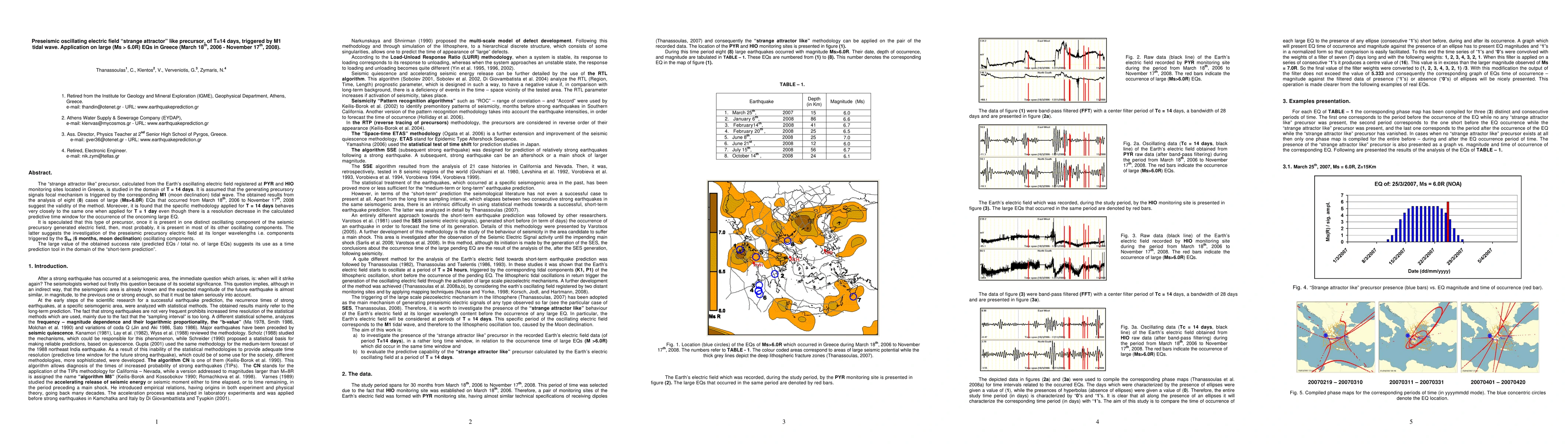 This research investigates a "strange attractor like" precursor in the Earth's oscillating electric field, triggered by the M1 tidal wave, which predicts large earthquakes (Ms > 6.0) in Greece. The study found a high success rate in predicting eight large earthquakes from 2006 to 2008, suggesting its potential as a short-term earthquake prediction tool.