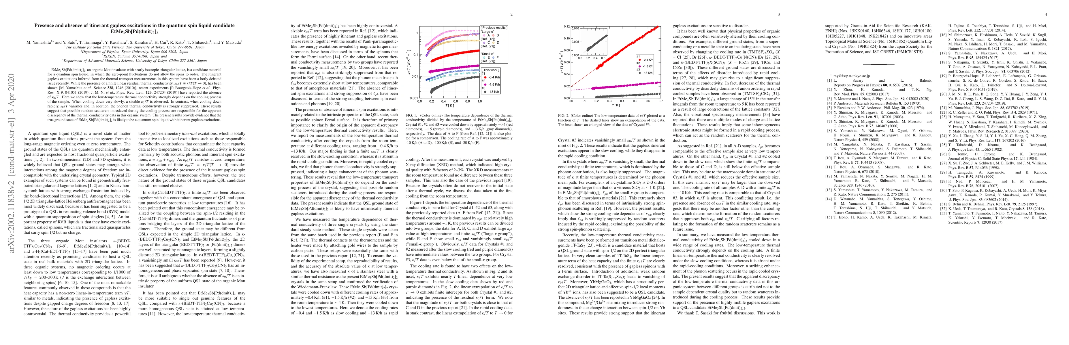 This paper investigates the thermal conductivity of EtMe$_3$Sb[Pd(dmit)$_2$]$_2$, a candidate for a quantum spin liquid, finding that the presence of itinerant gapless excitations depends on the sample's cooling process. Slow cooling shows a significant residual thermal conductivity, while rapid cooling eliminates it, suggesting that discrepancies in previous studies may arise from sample preparation.