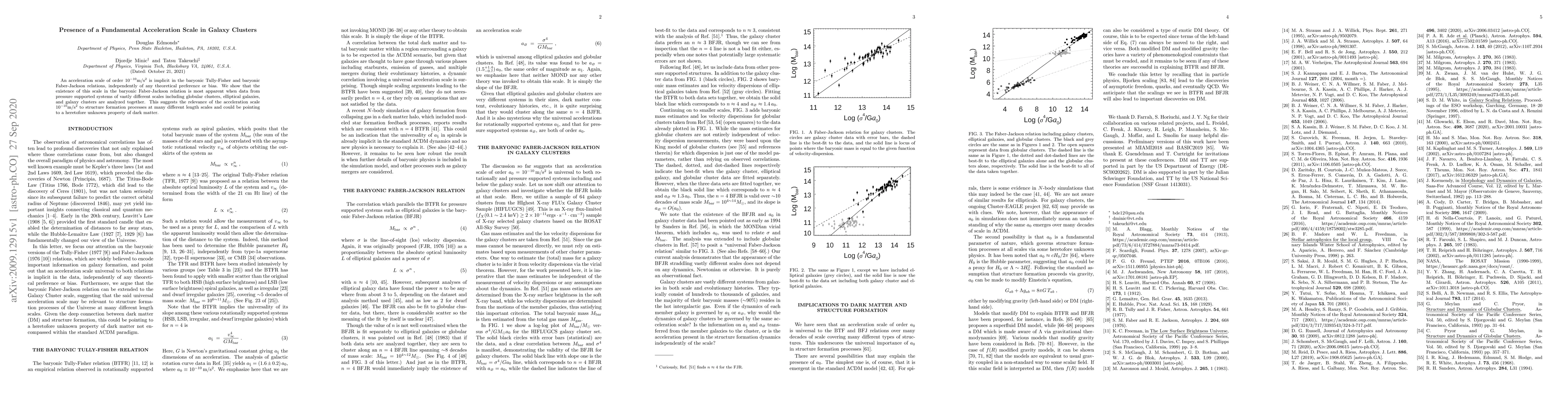 An acceleration scale of order $10^{-10}\mathrm{m/s^2}$ is implicit in the baryonic Tully-Fisher and baryonic Faber-Jackson relations, independently of any theoretical preference or bias. We show that the existence of this scale in the baryonic Faber-Jackson relation is most apparent when data from pressure supported systems of vastly different scales including globular clusters, elliptical galaxies, and galaxy clusters are analyzed together. This suggests the relevance of the acceleration scale $10^{-10}\mathrm{m/s^2}$ to structure formation processes at many different length scales and could be pointing to a heretofore unknown property of dark matter.