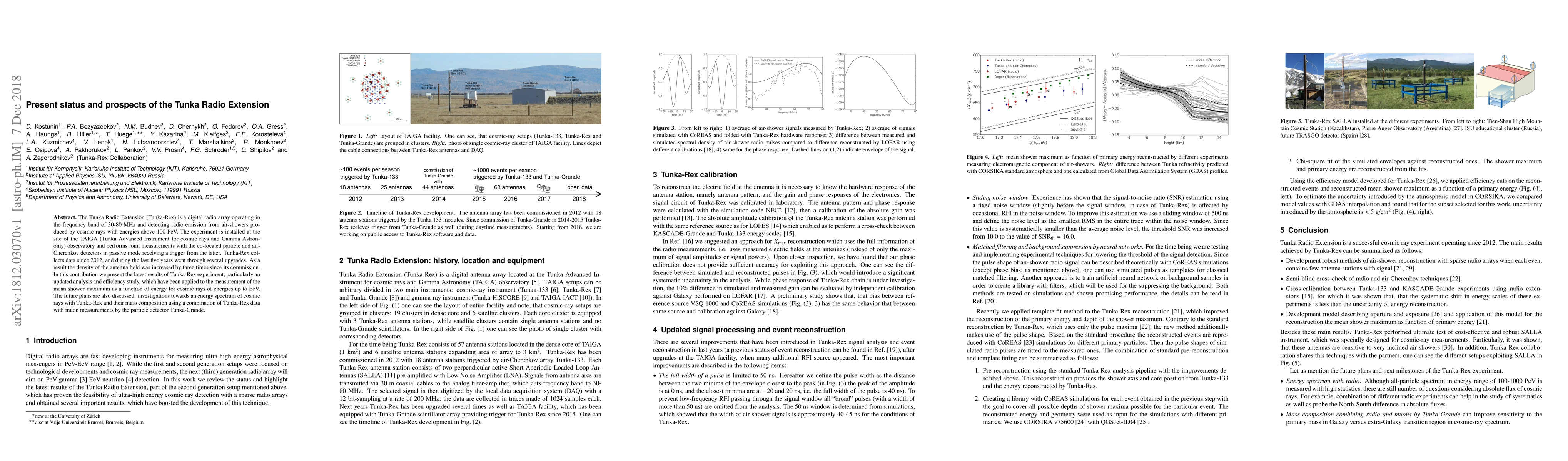 The Tunka Radio Extension (Tunka-Rex) is a digital radio array operating in the frequency band of 30-80 MHz and detecting radio emission from air-showers produced by cosmic rays with energies above 100 PeV. The experiment is installed at the site of the TAIGA (Tunka Advanced Instrument for cosmic rays and Gamma Astronomy) observatory and performs joint measurements with the co-located particle and air-Cherenkov detectors in passive mode receiving a trigger from the latter. Tunka-Rex collects data since 2012, and during the last five years went through several upgrades. As a result the density of the antenna field was increased by three times since its commission. In this contribution we present the latest results of Tunka-Rex experiment, particularly an updated analysis and efficiency study, which have been applied to the measurement of the mean shower maximum as a function of energy for cosmic rays of energies up to EeV. The future plans are also discussed: investigations towards an energy spectrum of cosmic rays with Tunka-Rex and their mass composition using a combination of Tunka-Rex data with muon measurements by the particle detector Tunka-Grande.