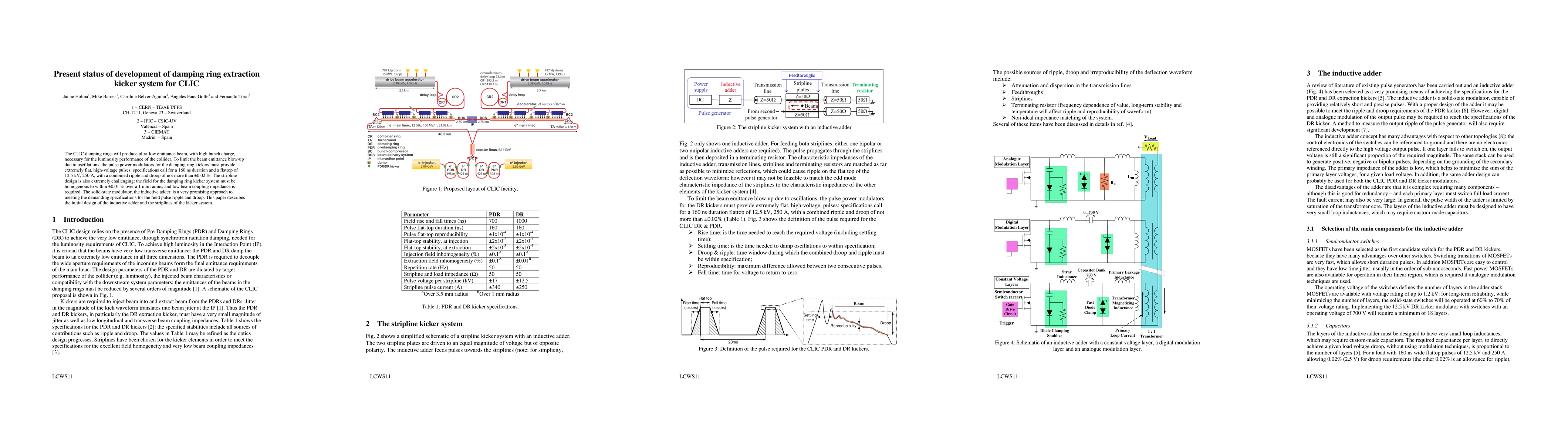 The CLIC damping rings will produce ultra-low emittance beam, with high bunch charge, necessary for the luminosity performance of the collider. To limit the beam emittance blow-up due to oscillations, the pulse power modulators for the damping ring kickers must provide extremely flat, high-voltage pulses: specifications call for a 160 ns duration and a flattop of 12.5 kV, 250 A, with a combined ripple and droop of not more than \pm0.02 %. The stripline design is also extremely challenging: the field for the damping ring kicker system must be homogenous to within \pm0.01 % over a 1 mm radius, and low beam coupling impedance is required. The solid-state modulator, the inductive adder, is a very promising approach to meeting the demanding specifications for the field pulse ripple and droop. This paper describes the initial design of the inductive adder and the striplines of the kicker system.
