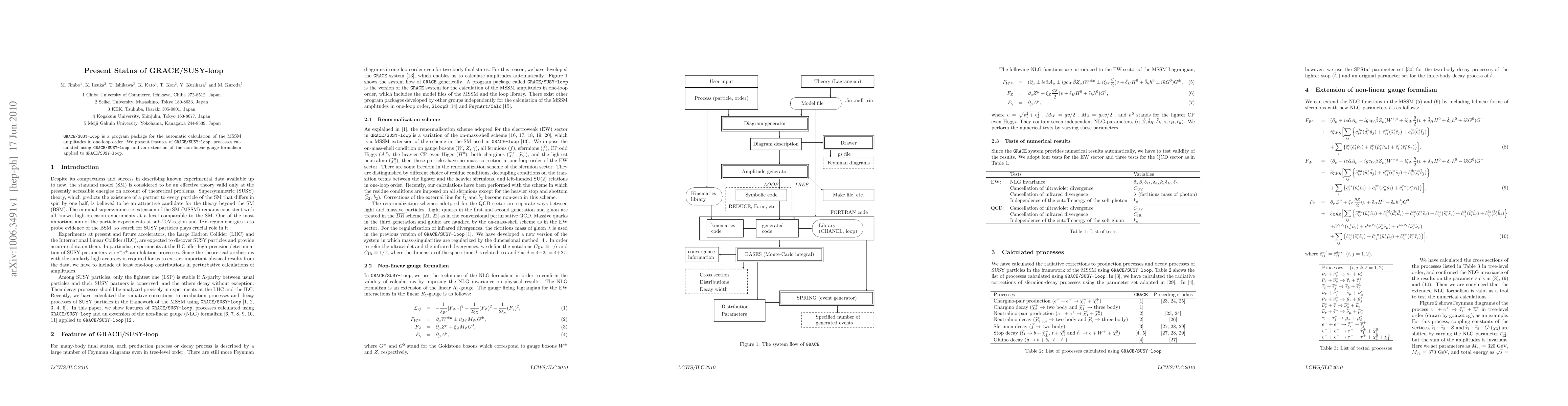 Summary: GRACE/SUSY-loop is an automated software package for calculating one-loop amplitudes in the Minimal Supersymmetric Standard Model (MSSM). It extends the non-linear gauge formalism to enhance its computational capabilities.