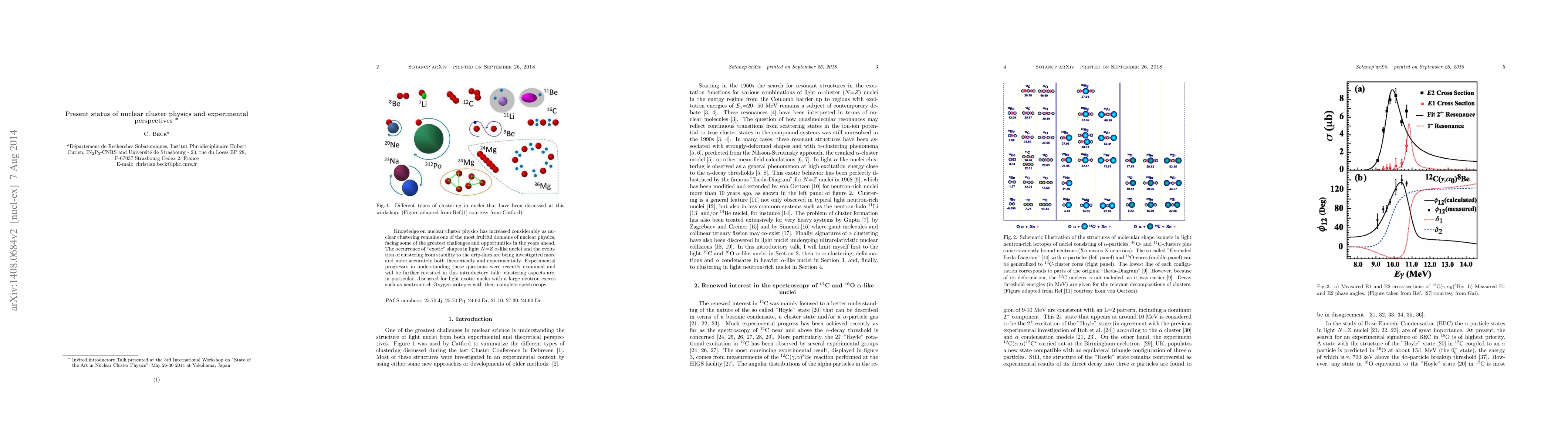 This paper reviews the current state of nuclear cluster physics, highlighting the investigation of exotic shapes in light alpha-like nuclei and the evolution of clustering near the drip-lines. It focuses on experimental advancements and discusses clustering in neutron-rich Oxygen isotopes, emphasizing their complete spectroscopy.