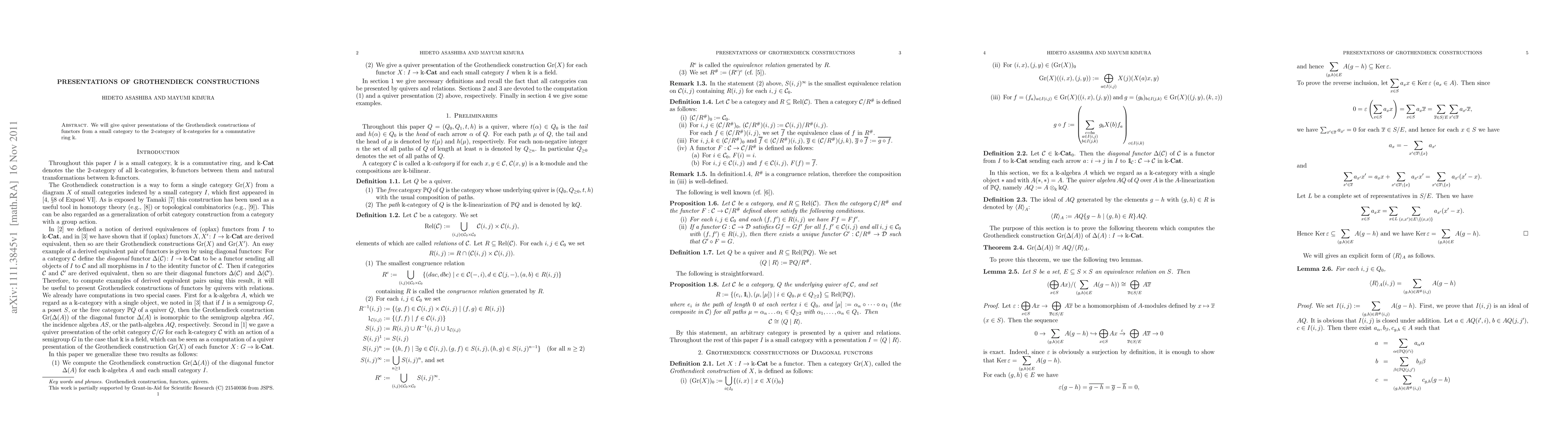 We will give quiver presentations of the Grothendieck constructions of functors from a small category to the 2-category of $\Bbbk$-categories for a commutative ring $\Bbbk$.