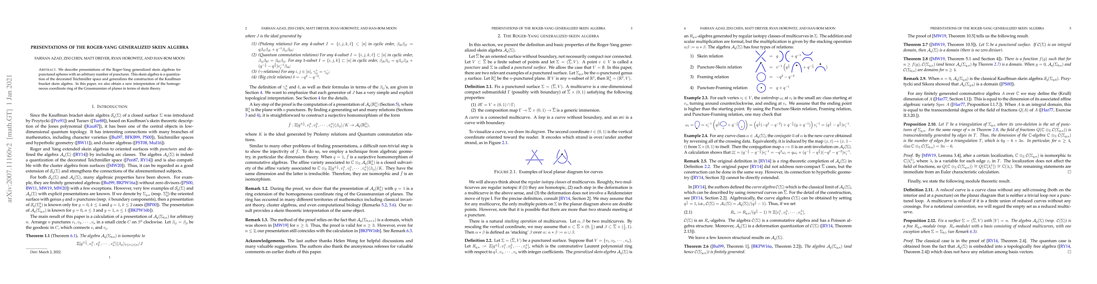 This paper presents the structure of Roger-Yang generalized skein algebras for punctured spheres, offering a new interpretation of the Grassmannian's homogeneous coordinate ring through skein theory, and quantizing the decorated Teichmuller space.