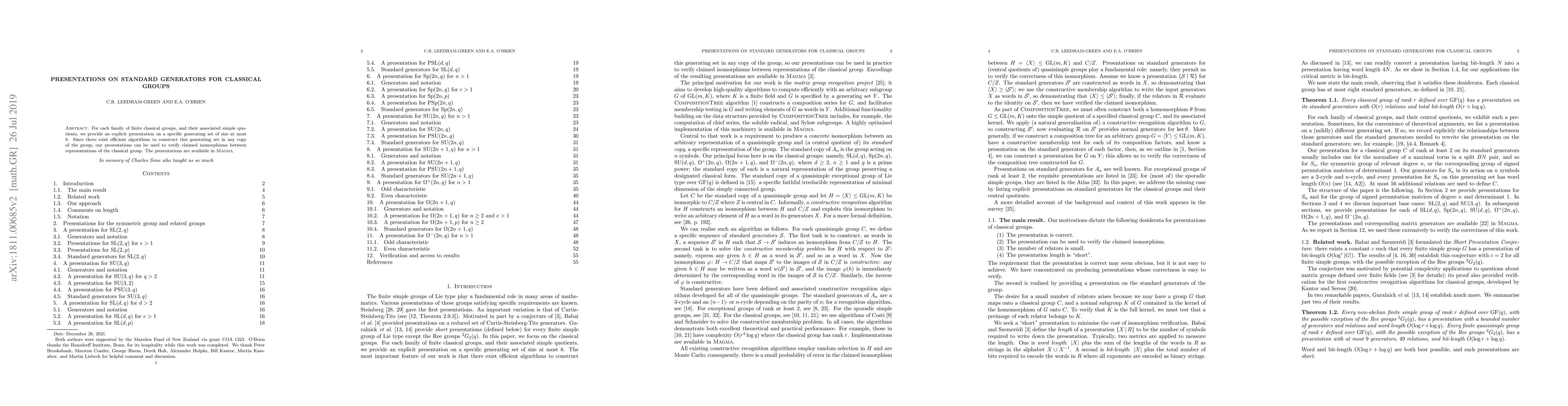 For each family of finite classical groups, and their associated simple quotients, we provide an explicit presentation on a specific generating set of size at most 8. Since there exist efficient algorithms to construct this generating set in any copy of the group, our presentations can be used to verify claimed isomorphisms between representations of the classical group. The presentations are available in Magma.