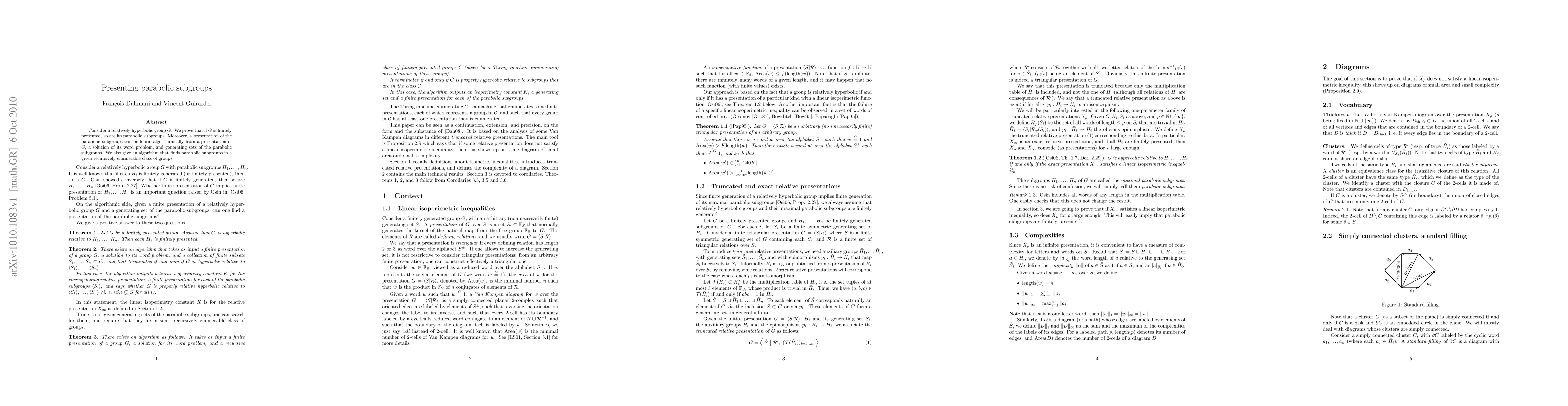 This paper proves that finitely presented relatively hyperbolic groups retain this property in their parabolic subgroups, with an algorithmic method to derive their presentations. It also provides an algorithm to identify parabolic subgroups within a given recursively enumerable class of groups.