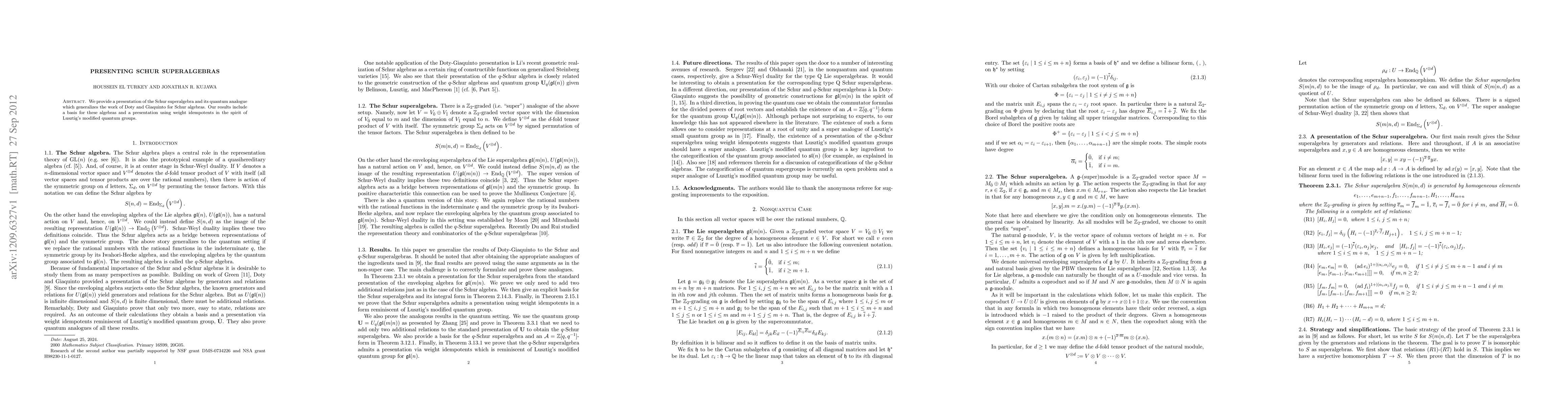 Researchers provide a presentation of the Schur superalgebra and its quantum analogue, including a basis for these algebras and a new method for constructing them using weight idempotents.