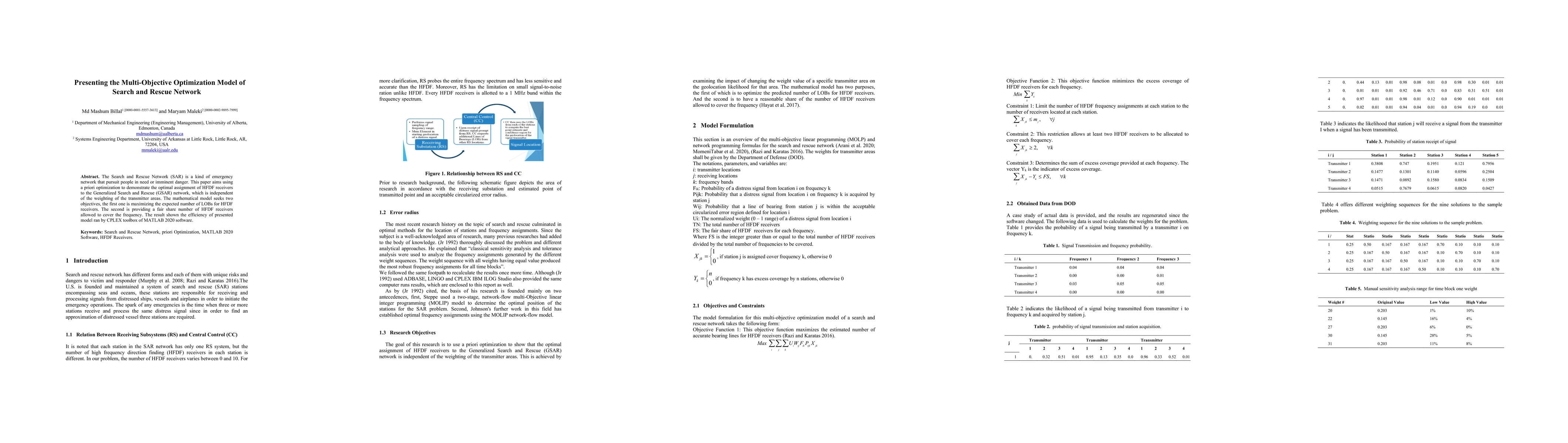 The Search and Rescue Network (SAR) is a kind of emergency network that pursuit people in need or imminent danger. This paper aims using a priori optimization to demonstrate the optimal assignment of HFDF receivers to the Generalized Search and Rescue (GSAR) network, which is independent of the weighting of the transmitter areas. The mathematical model seeks two objectives, the first one is maximizing the expected number of LOBs for HFDF receivers. The second is providing a fair share number of HFDF receivers allowed to cover the frequency. The result shown the efficiency of presented model ran by CPLEX toolbox of MATLAB 2020 software.