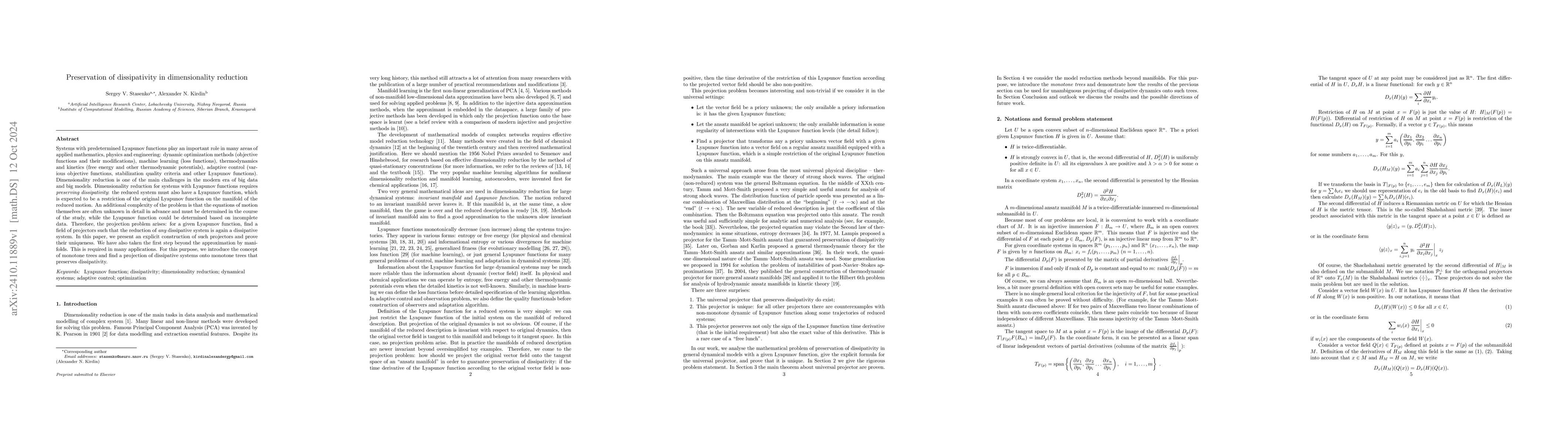 This paper develops methods to ensure the preservation of dissipativity in systems with Lyapunov functions during dimensionality reduction. It constructs explicit projectors to maintain the dissipative property of the reduced system and proves their uniqueness, extending beyond manifold approximations using the concept of monotone trees.