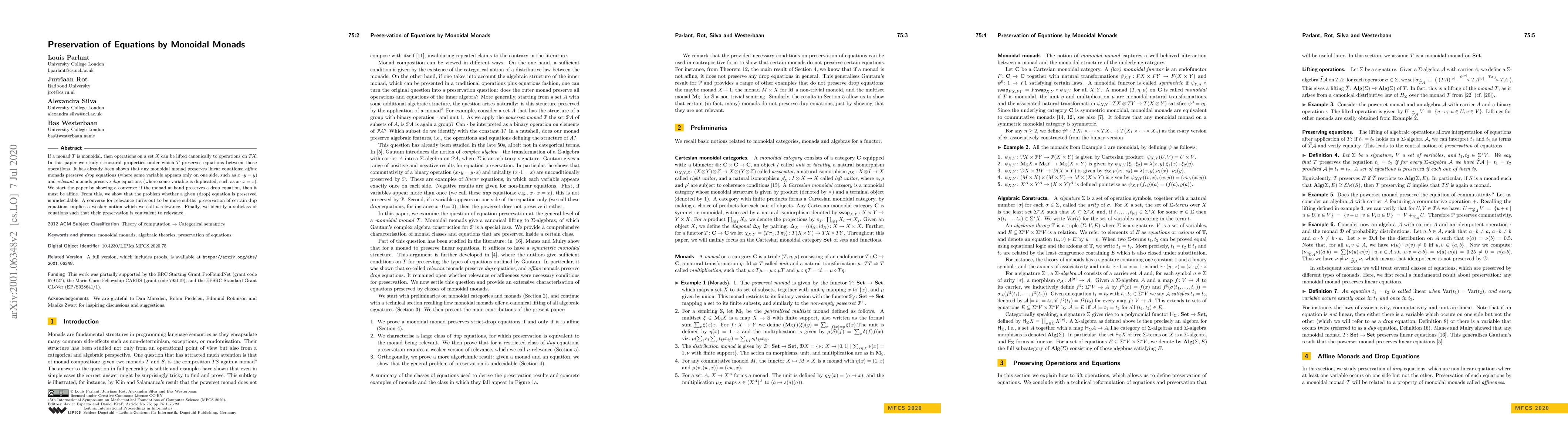 If a monad $T$ is monoidal, then operations on a set $X$ can be lifted canonically to operations on $TX$. In this paper we study structural properties under which $T$ preserves equations between those operations. It has already been shown that any monoidal monad preserves linear equations; affine monads preserve drop equations (where some variable appears only on one side, such as $x\cdot y = y$) and relevant monads preserve dup equations (where some variable is duplicated, such as $x \cdot x = x$). We start the paper by showing a converse: if the monad at hand preserves a drop equation, then it must be affine. From this, we show that the problem whether a given (drop) equation is preserved is undecidable. A converse for relevance turns out to be more subtle: preservation of certain dup equations implies a weaker notion which we call $n$-relevance. Finally, we identify the subclass of equations such that their preservation is equivalent to relevance.