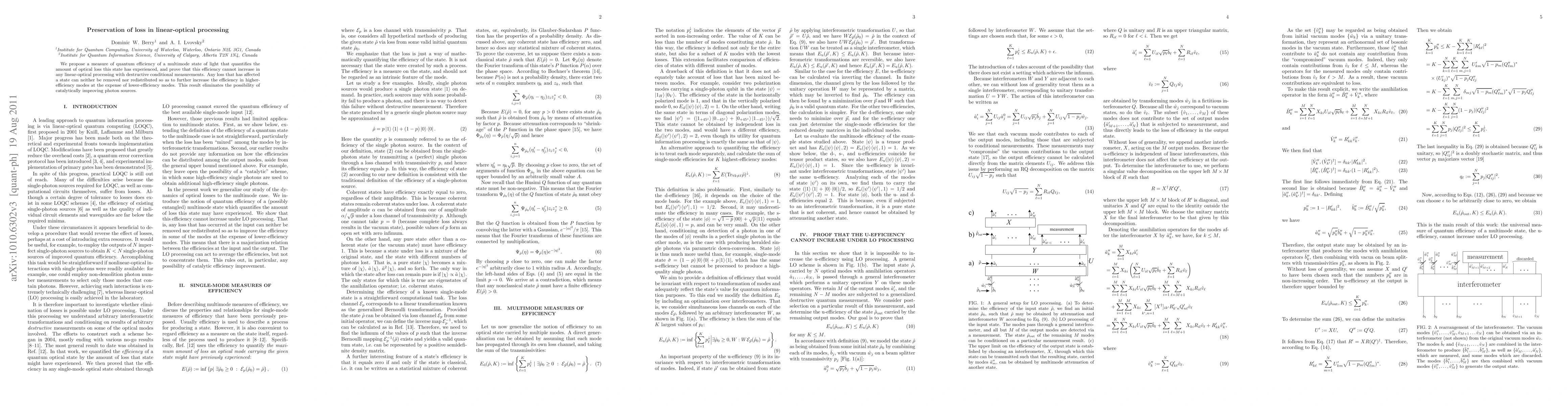 This paper introduces a measure of quantum efficiency for multimode light states, demonstrating that loss cannot be mitigated or redistributed in linear-optical processing with destructive measurements, thereby ruling out the catalytic enhancement of photon sources.