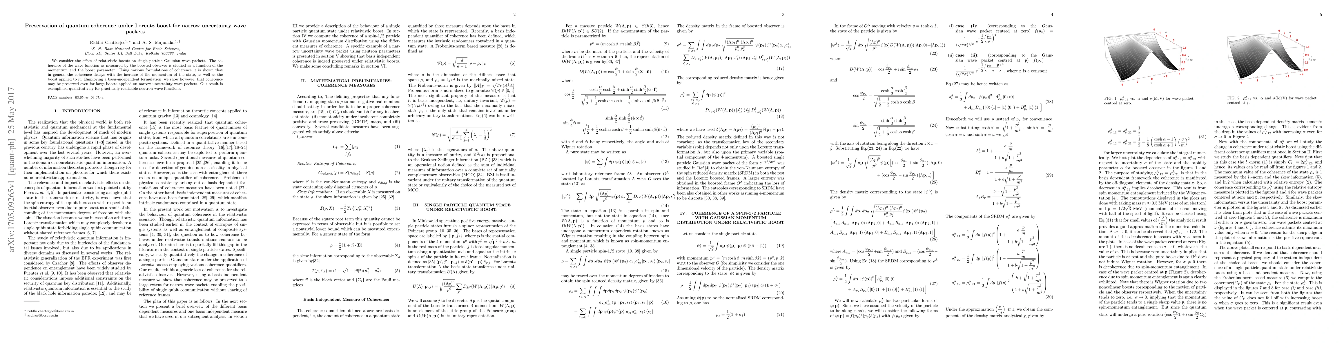 Summary: This study investigates how relativistic boosts affect the coherence of single particle Gaussian wave packets, demonstrating that coherence generally decays with increased momentum and boost. However, using a basis-independent formulation, it shows that coherence can be preserved for large boosts on narrow uncertainty wave packets, as exemplified by practically realizable neutron wave functions.