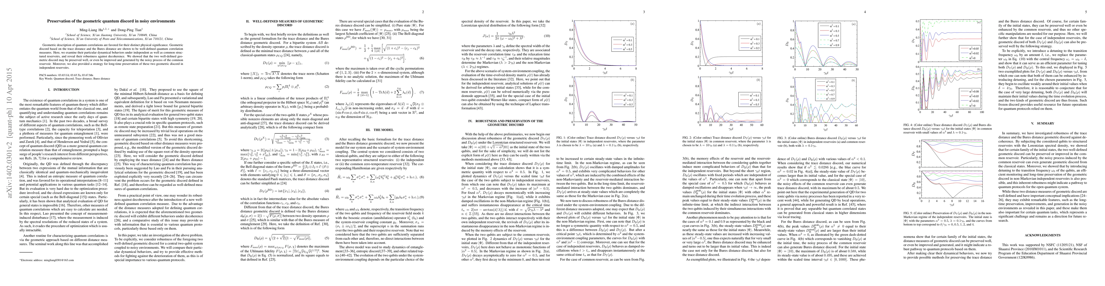 This paper investigates the preservation of geometric quantum discord under noisy environments, demonstrating that it can be robust against decoherence. The study reveals that geometric discord based on trace and Bures distances can be maintained or even enhanced by common reservoir noise, and proposes strategies for its long-term preservation.