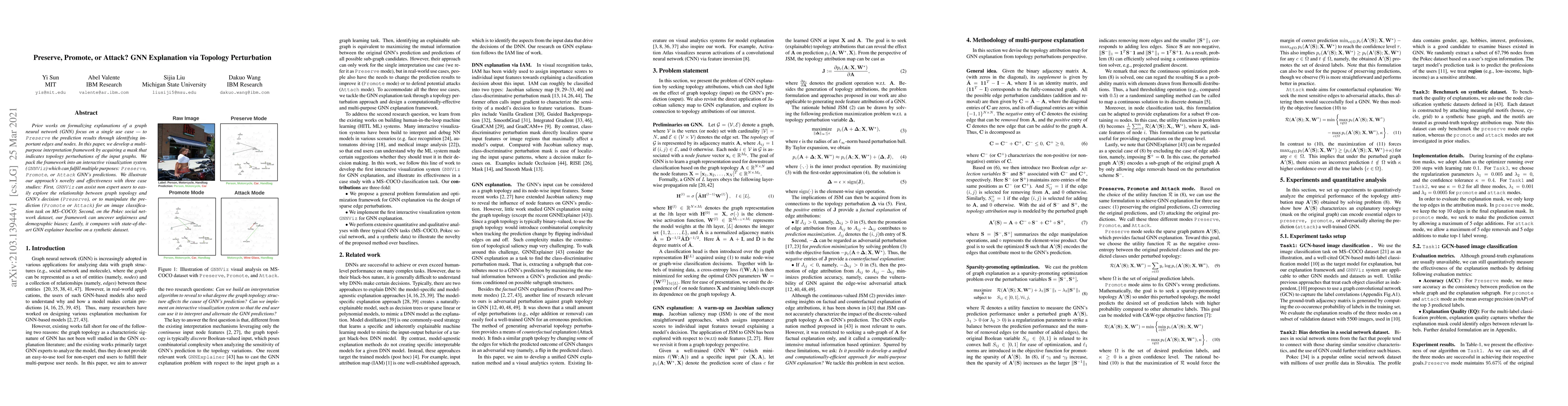 Prior works on formalizing explanations of a graph neural network (GNN) focus on a single use case - to preserve the prediction results through identifying important edges and nodes. In this paper, we develop a multi-purpose interpretation framework by acquiring a mask that indicates topology perturbations of the input graphs. We pack the framework into an interactive visualization system (GNNViz) which can fulfill multiple purposes: Preserve,Promote, or Attack GNN's predictions. We illustrate our approach's novelty and effectiveness with three case studies: First, GNNViz can assist non expert users to easily explore the relationship between graph topology and GNN's decision (Preserve), or to manipulate the prediction (Promote or Attack) for an image classification task on MS-COCO; Second, on the Pokec social network dataset, our framework can uncover unfairness and demographic biases; Lastly, it compares with state-of-the-art GNN explainer baseline on a synthetic dataset.