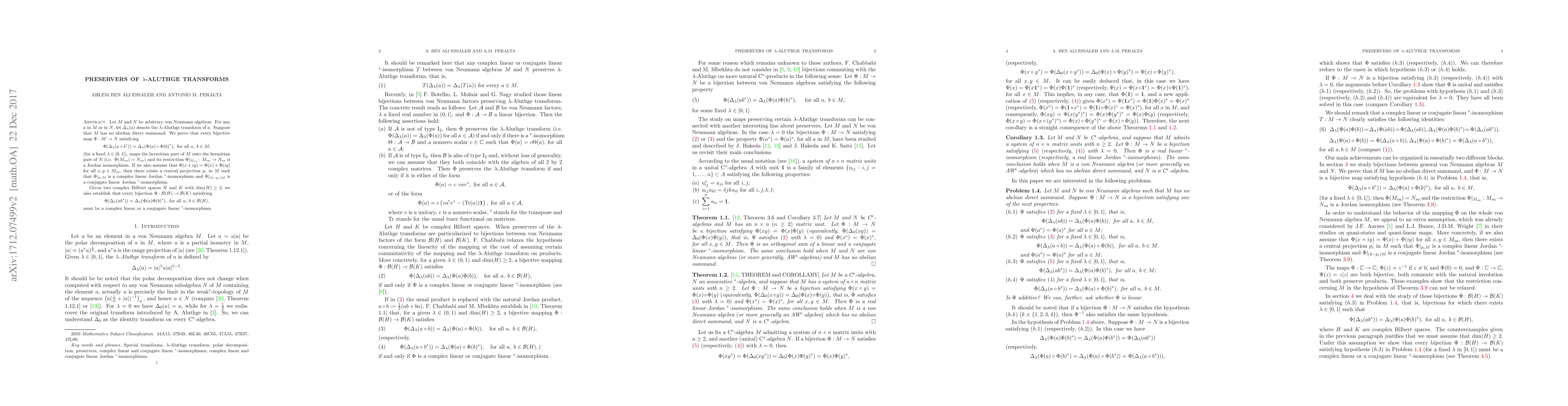 Let $M$ and $N$ be arbitrary von Neumann algebras. For any $a$ in $M$ or in $N$, let $\Delta_{\lambda}(a)$ denote the $\lambda$-Aluthge transform of $a$. Suppose that $M$ has no abelian direct summand. We prove that every bijective map $\Phi:M\to N$ satisfying $$\Phi(\Delta_{\lambda}(a\circ b^*))=\Delta_{\lambda}(\Phi(a) \circ \Phi(b)^*), \hbox{ for all } a,\;b\in M,$$ (for a fixed $\lambda\in [0,1]$), maps the hermitian part of $M$ onto the hermitian part of $N$ (i.e. $\Phi (M_{sa}) = N_{sa}$) and its restriction $\Phi|_{M_{sa}} : M_{sa}\to N_{sa}$ is a Jordan isomorphism. If we also assume that $\Phi (x +i y ) = \Phi (x) +\Phi (i y)$ for all $x,y\in M_{sa}$, then there exists a central projection $p_c$ in $M$ such that $\Phi|_{p_c M}$ is a complex linear Jordan $^*$-isomorphism and $\Phi|_{(\textbf{1}-p_c) M}$ is a conjugate linear Jordan $^*$-isomorphism. Given two complex Hilbert spaces $H$ and $K$ with dim$(H)\geq 2$, we also establish that every bijection $\Phi: \mathcal{B}(H)\to \mathcal{B}(K)$ satisfying $$\Phi(\Delta_{\lambda}(a b^*))=\Delta_{\lambda}(\Phi(a) \Phi(b)^*), \hbox{ for all } a,\;b\in \mathcal{B}(H),$$ must be a complex linear or a conjugate linear $^*$-isomorphism.